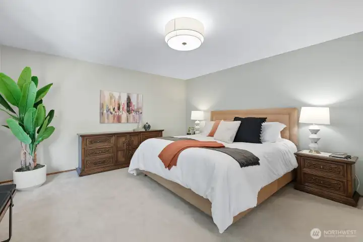 Welcome home to this meticulously maintained Buchan home in Sammamish! Offering a timeless floor plan with formal living & dining rooms, a beautifully remodeled kitchen, and a versatile main-floor bedroom/office. The inviting family room with fireplace is perfect for gatherings or everyday living. Upstairs you’ll find an oversized primary suite w/walk-in closet & updated ensuite plus 2 additional bedrooms. All bathrooms have new quartz countertops & updated fixtures. This floor plan has a rare bonus room providing endless options: gym, media room, or potential ADU! Ample storage, 2-car garage & A/C. Fully fenced corner lot showcases mature landscaping & even an apple tree! Close to parks & top-rated schools, this is Sammamish at its best!