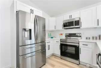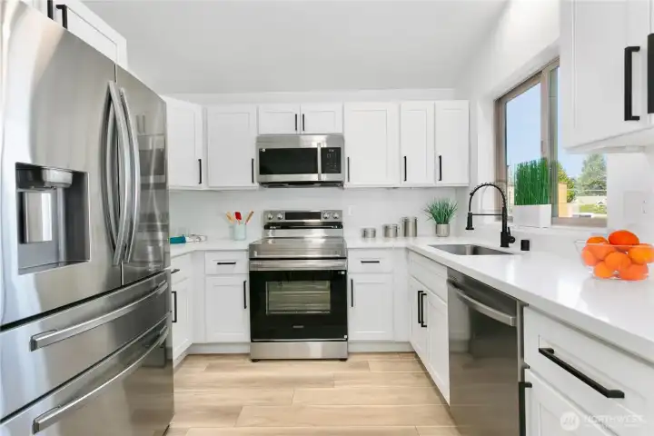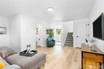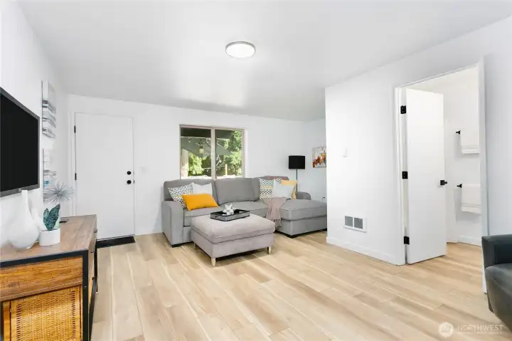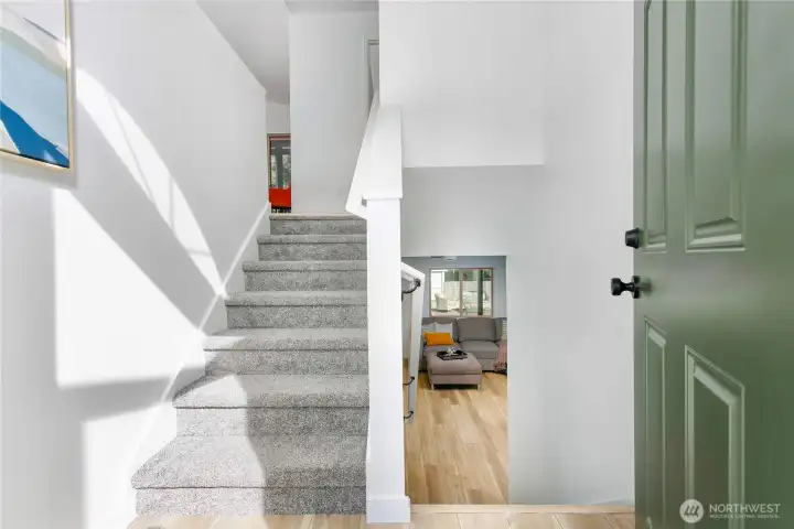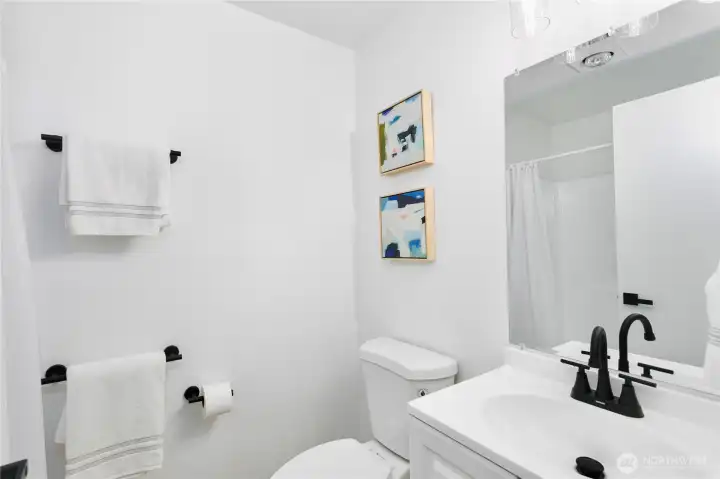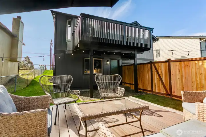 This Home in Tacoma will check ALL the boxes! Fully Turn-KEY & Ready for Move-in TODAY; this home has been updated top to bottom. Back alley access to 2 car garage+ main floor entry w/no stairs for possible guest suite? 1 Bedroom, 1 Full Bath + Living area on the main/lower floor! Upstairs you will find a spacious Living & Dining area with pristine chef's Kitchen. Quartz countertops, shaker cabinets, stainless steel appliances all brand NEW! Enjoy beautiful LVP flooring, fresh carpet, interior/exterior paint throughout! Back deck accessible from kitchen AND Primary Suite w/ensuite Bathroom w/walk-in closet. 2nd Bedroom upstairs. Perfect lawn, fully fenced+ custom patio. This is your oasis central to it ALL. Walk to 6th AVE & Parks. NO HOA