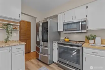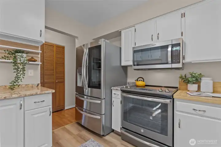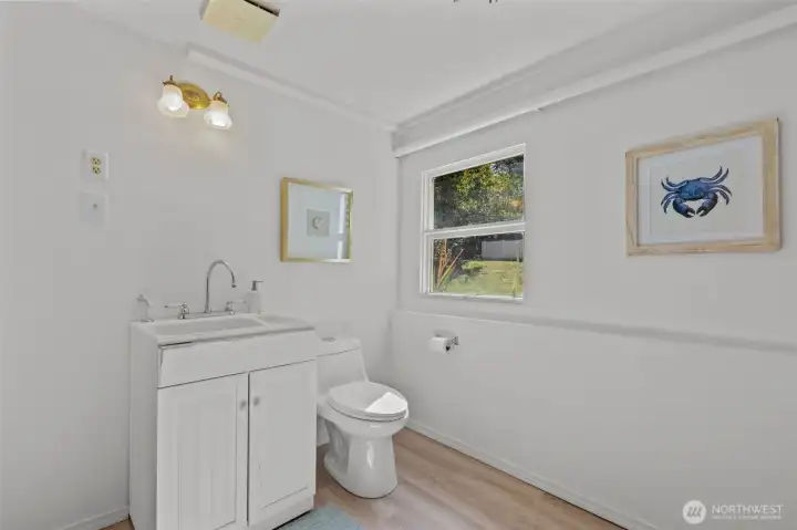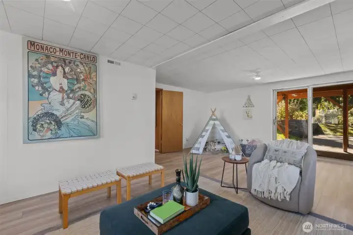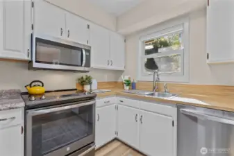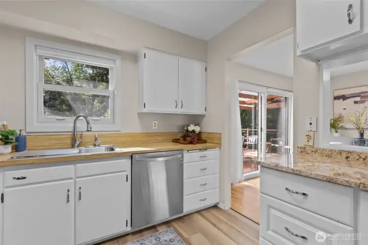 This beautiful split-level home features 4 bedrooms, 1½ baths, & thoughtful updates throughout. Upstairs features original hardwood floors, a bright kitchen with stainless-steel appliances & skylights that fill the space with natural daylight. Downstairs boasts new plank flooring, a sprawling primary bedroom & oversized bonus room—ideal as a home office, game room or second living space! The spacious downstairs half bathroom could easily be converted into a second full bath. Outside, you’ll enjoy a private, greenbelt-backed yard with raised garden beds, an expansive covered deck, large patio, & your own shed/workshop with power. With ample off-street parking & close access to shops, restaurants, & highways – this home really has it all!