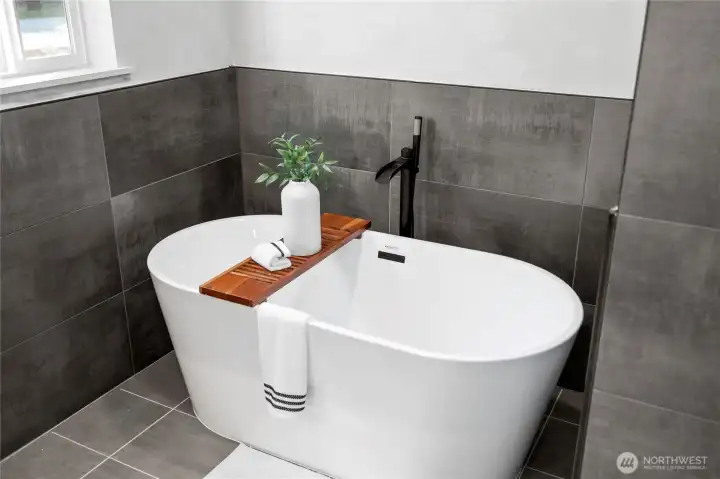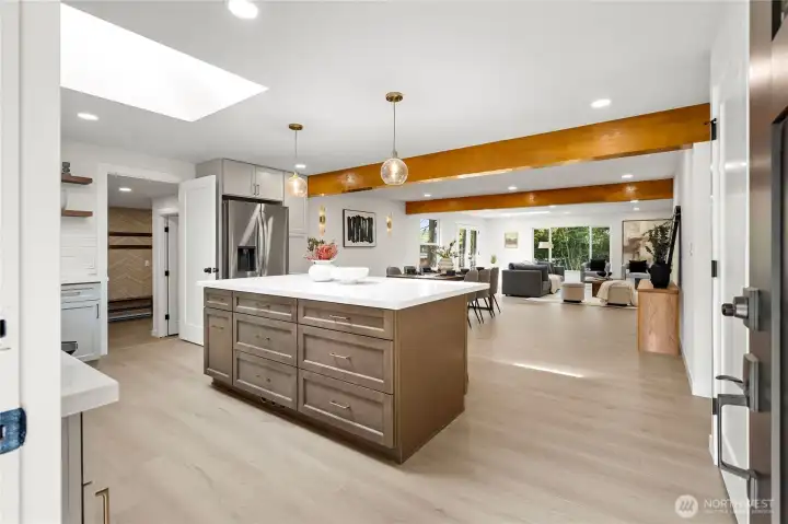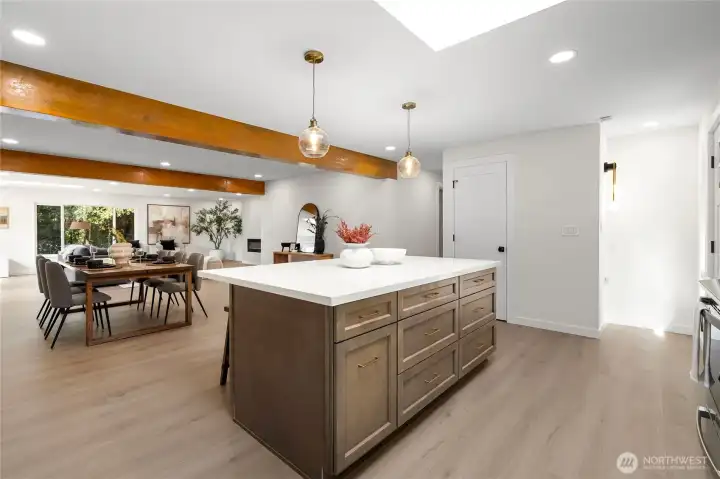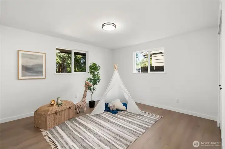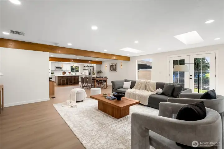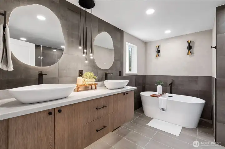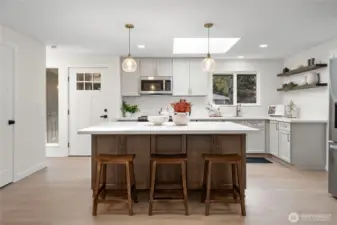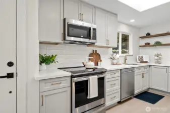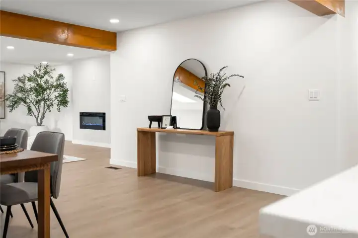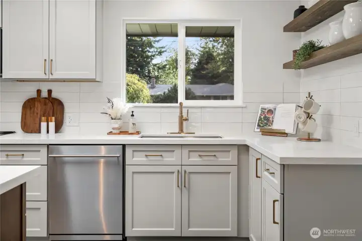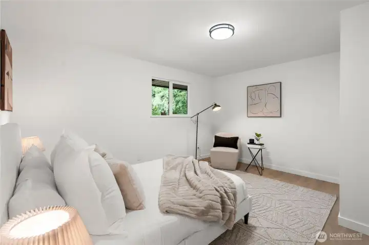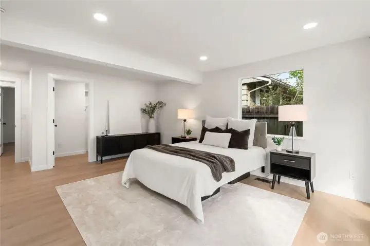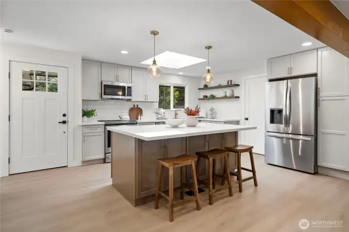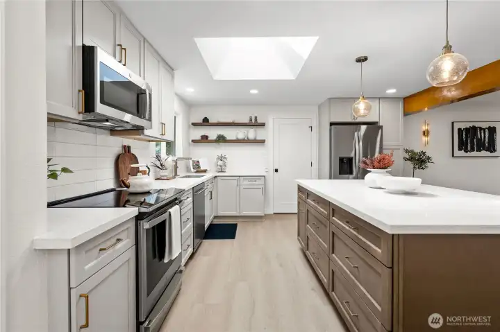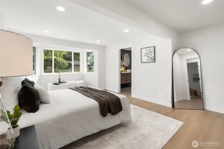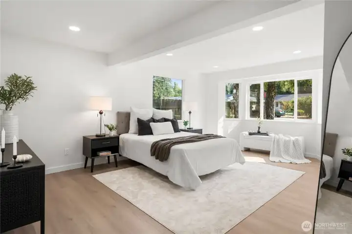 Welcome to Eastmont! This enchanting one-story blends timeless charm w/ modern elegance in a setting you’ll never want to leave. Step into an open layout with an oversized living room perfect for gatherings. The chef's kitchen stuns w/ quartz counters, new cabinets, an oversized island in majestic vintage hues, & gleaming SS appliances. Pendant lighting, curated finishes, & new flooring shine throughout. The grand primary suite offers a walk-in closet and a designer inspired, spa-like en-suite w/ floating vanity, freestanding tub, & luxe shower. A main bath dazzles w/ limewash walls & craftsman tile. Fresh paint in & out, oversized laundry+mudroom, lush new grass, big backyard, 2-car garage,& ample parking. Close to I-5, shopping & schools