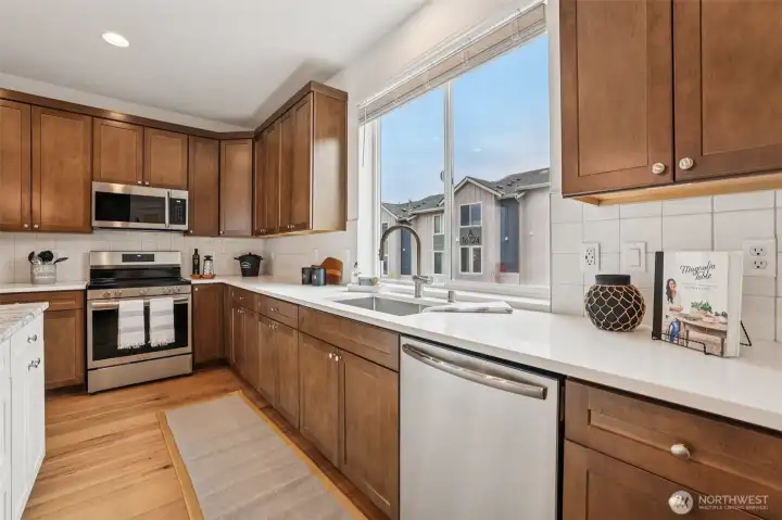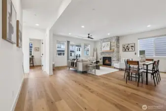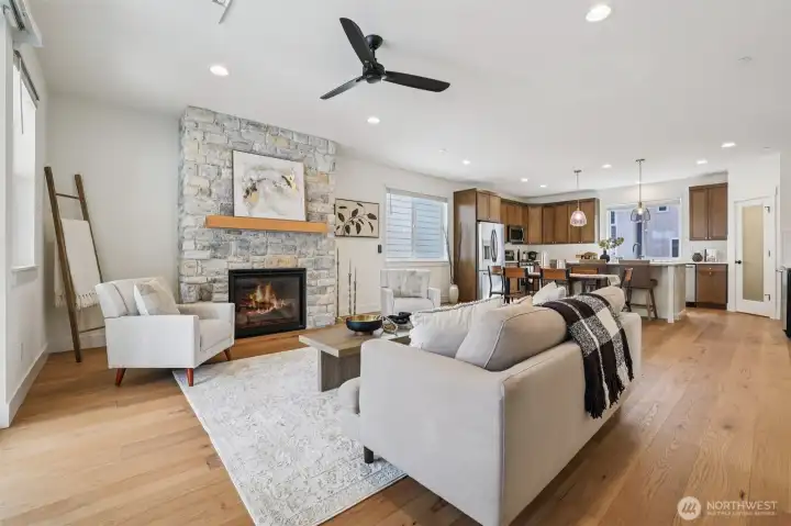 4.99% rate w/ $50k builder buydown. New construction 4-bed in Bothell by Gleneagle Homes. Design is great for multi-generational living w/ full suite on ground floor + kitchenette 2nd Primary or rec-rm. Private patio & fully-fenced. Open concept main w/ chef’s kitchen: huge island w/ leathered granite countertops & Aristokraft shaker-style cabinetry, SS appl (choose electric or gas), walk-in pantry, buffet w/ bev fridge & wine rack. Gas FP w/ showcase river stone surround. Ceiling fan + mini-splits for yr-round comfort. Seamless flow to LG covered deck. Den + powder on main. Top floor has 2 beds + Primary w/ ¾ ensuite & WIC. Laundry w/ sink & WD. Window treatments & wide-plank HWs. Modern farmhouse meets coastal. Ideal commuter location.