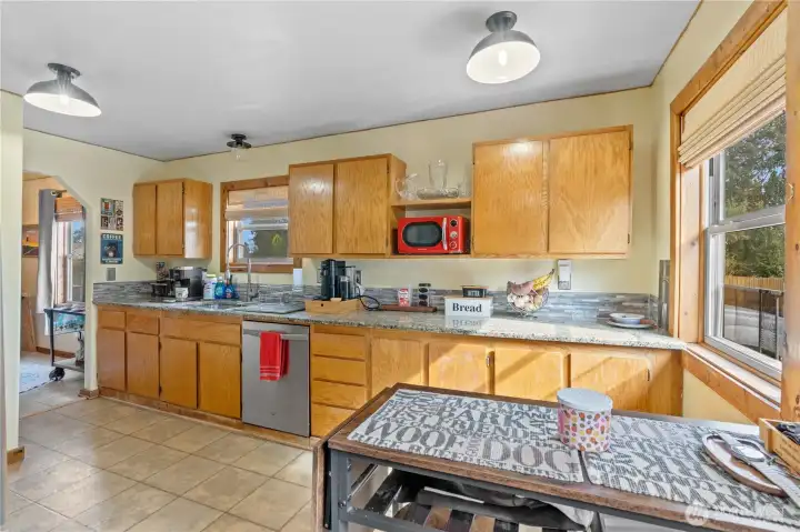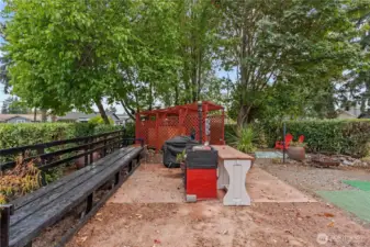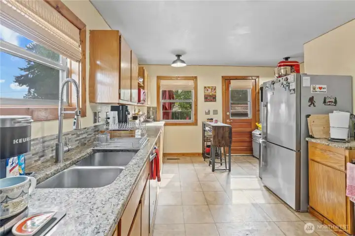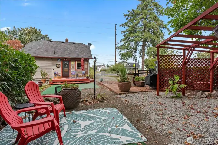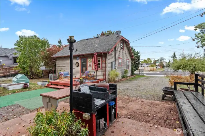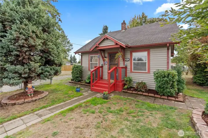 Adorable Craftsman on huge double lot! This home has all the character, w/modern amenities. Living room features original hardwood floors. Spacious kitchen w/granite countertops + stainless steel appliances. Heat pump for efficient heating/cooling; tankless water heater; double pane windows; plumbing, electrical, sewer, all redone. Bathroom incl large, heated soaking tub w/jets. Bedroom on Main can be used as Primary; two addtl bedrooms upstairs. On over 1/4 acre, huge yard w/Outdoor Kitchen perfect for entertaining! Off street + RV parking. Fully fenced w/gated entry. Enjoy the space - or subdivide! Newly paved street w/built-in street parking for guests. Minutes from 512, I-5, parks, schools. This move-in ready home is waiting for you!
