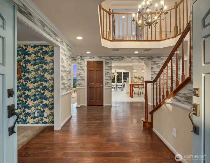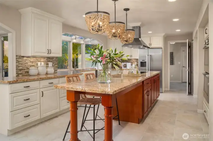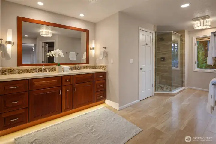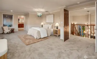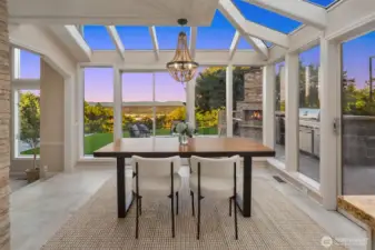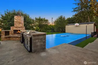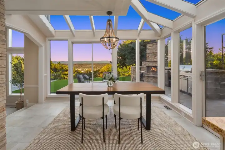 Beautiful Tudor Estate with Cascade Views. Enjoy stunning sunrises over the Cascades and sparkling city lights from this exceptional home in an exclusive 7-home gated community. This elegant home features soaring ceilings and thoughtful updates including new carpet, fresh paint, and updated lighting throughout. The indoor swimming pool room offers a 4-panel sliding glass wall for seamless indoor-outdoor living. A guest apartment with kitchen and bath, outdoor kitchen, sport court, and hot tub provides wonderful entertaining options. The additional 600 SF detached garage offers plenty of storage space. Located minutes from I-5, Hwy 18, and Hwy 167 while maintaining complete privacy - the perfect blend of luxury and accessibility.