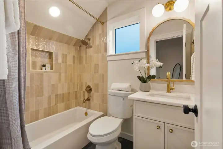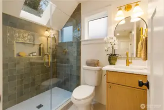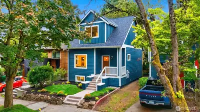 Remodeled Madrona beauty on a quiet, tree-lined street, walkable to local shops, eateries, parks & schools. New siding, windows, roof, & covered porch welcome you into a fresh, airy interior w soaring ceilings, hardwood floors & new finishes throughout. Open-concept lvg w brand-new kitchen & dining space w built ins flowing to an expansive deck. Upstairs primary retreat features a lrg walk-in & spa-like ¾ BA w skylight filtering natural light. Secondary bed has its own ensuite w timeless new finishes. This home lives lrg w additional space in the lower - bonus rm, separate entrance, new full BA & spacious 3rd bed. Earthquake retrofitted, w permitted electrical, plumbing & more. All the work has been done so you can thrive from day one!