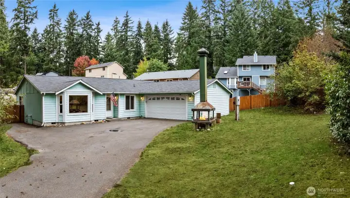 Welcomed by a private extended driveway at the helm of a cul-de-sac and greeted w/ ample parking, a 30-amp power and water RV stub, along w/ a large firepit, this spacious 3-bed/2-bath, 1,729 Rambler is sure to impress.Maximize the spatial efficiency in this open concept gem w/ vaulted ceilings, LVP flooring, natural lighting, and a grand primary bathroom suite w/ a deep walk-in closet.Indulge in the privacy of your fully fenced backyard starting on a freshly painted deck, perfect for family gatherings while the dogs run freely.Clearwood’s amenities include 3-lakes for fishing, swimming, and boating, walking trails, parks w/ covered BBQ awnings, boat launches, and a community center w/ a private in-ground pool and hot tub. Don't Miss Out!