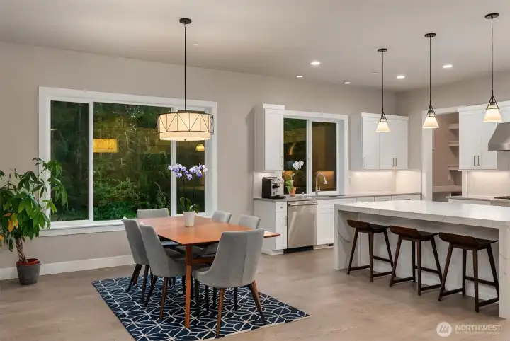 Built in 2021, this contemporary home showcases an open layout with year-round natural light. Walk inside to your chef’s kitchen offering dual pantries, waterfall quartz countertops, an oversized island, high-end stainless steel appliances, 60” fridge, and white shaker cabinetry. With 4 bedrooms, 3.5 baths—including 2 en-suites—plus an office and bonus retreat, there’s space for every need. The primary suite features a flex space, large spa-like bath, and expansive walk-in closet, while the great room opens to a covered patio with a cozy outdoor fireplace. Additional features include a 3-car garage, mudroom, and central A/C - all within top-rated Northshore School District on nearly a third of an acre. This one is a must-see!