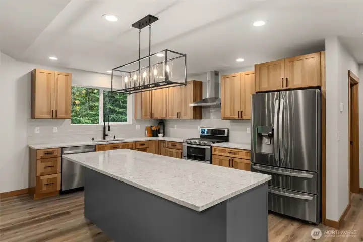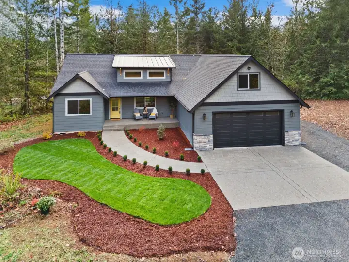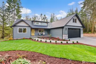 Just Completed – Custom Craftsman in Shelton! Discover refined living in this brand-new, quality-built home nestled in a boutique neighborhood just minutes from Hwy 101. With 2,201SF of single-level comfort plus a bonus room above the garage, this 3-bed, 2-bath stunner offers vaulted ceilings, rich custom woodwork, and a slate-accented gas fireplace. The gourmet kitchen shines with a gas double oven, stainless steel appliances, solid surface counters, and walk-in pantry. The luxurious primary suite features a spa-inspired tile shower, soaking tub, and walk-in closet. Outside, enjoy a covered composite deck with vaulted wood ceiling overlooking your private 2/3-acre lot. Finished garage, heat pump, generator-ready—this home checks every box!