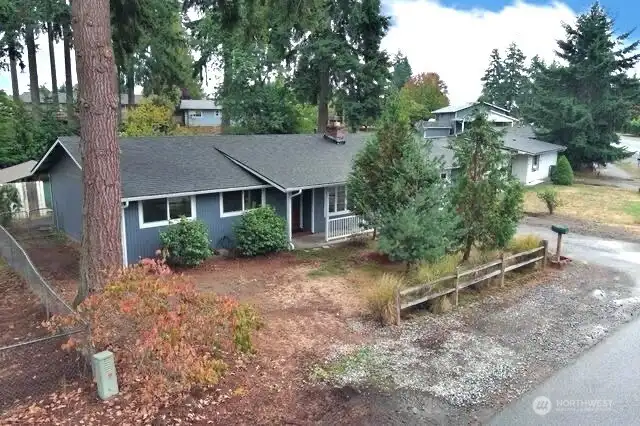Discover this charming 3 bedroom, 2 bath rambler on a large, level lot in a prime Covington location. Featuring a floorplan that is both practical and inviting. Step inside and be greeted by recently refinished hardwood floors throughout and stunning custom fir trim. The cozy living room with wood stove that heats the entire house adds to its appeal. Fresh interior and exterior paint give the home a bright, clean feel. With a newer roof, vinyl windows, and a BRAND NEW septic system this home offers everything you need. Large utility room with backyard access and the garage has a workshop. Enjoy perennial gardens, flowering trees and even room for your RV! Just a short stroll to town, close to Jenkins Creek Park, and easy Hwy 18 access.