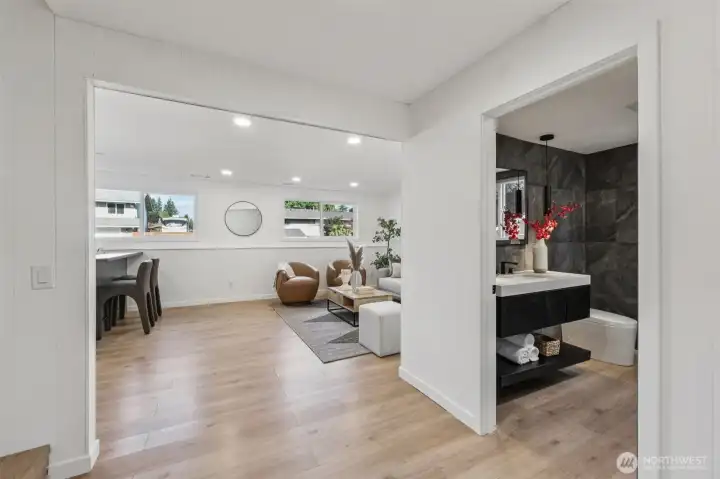 Experience modern luxury in this unique and elegant tri-level home, fully remodeled with high-end finishes throughout. This 4 bedroom, 2.5 bath, 2,352 sqft. home features a bright open layout, abundant natural light, spa-like bathrooms, and a custom kitchen with stainless steel appliances. Updates include brand new flooring, new high-efficiency windows, new roof, A/C, upgraded plumbing, and a new heat pump. Outside, freshly planted grass and new landscaping on spacious level lot. EV charging conveniently added in the garage. Outstanding location, close to great schools, parks, and shopping, easy highway access. This home is an exceptional blend of comforting luxury, modern design, and functionality!