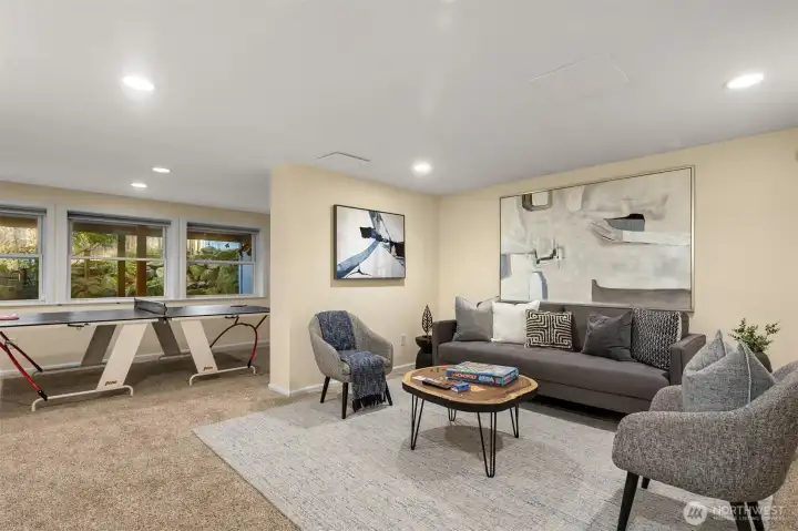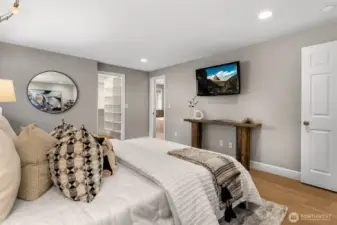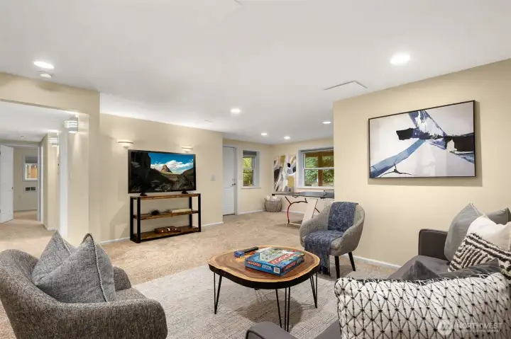 Unwind in the well-appointed modern daylight rambler in Bridle Trails. This thoughtfully updated 3,410 sq ft, 5 bedroom offers the best of indoor and outdoor living. Main floor features an oversized kitchen with center island, bar seating, gas cooking and abundance of counters. Luxurious primary suite with walk-in closet, 5-piece bath with soaking tub. As you retreat to the lower level, enjoy movie night in the lavish movie theater w/ surround sound and cozy recliners. Additional bonus room to host a vast amount of guests. Oversized two car garage with room for storage and two additional exterior sheds. Entertain year round on the sizable covered back deck w/ composite decking and translucent roofing panels. Benjamin Franklin Elem.