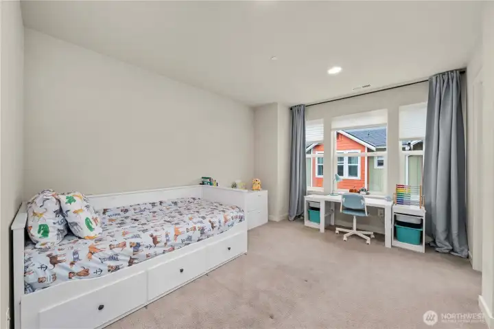 Spacious & Contemporary Kestrel Ridge Townhome. Beautifully maintained and move-in ready, this premium Sammamish residence offers high-end finishes and a desirable location. The chef’s kitchen features stainless steel appliances, a five-burner range, and a large quartz island—perfect for cooking and entertaining. The open-concept great room boasts soaring ceilings and a cozy gas fireplace. Flexible floor plan with three bedrooms, including two upper-level primary suites plus a lower-level bedroom ideal for a home office or guest room. Step outside to a private patio and low-maintenance fenced yard backing to a peaceful greenbelt. Attached one-car garage with storage plus an additional reserved parking space. Highly rated LW school district.