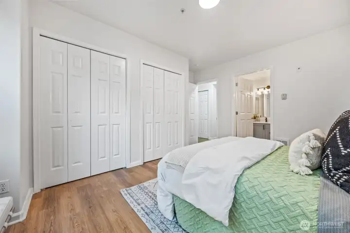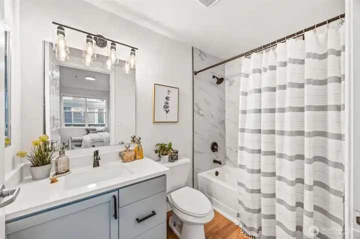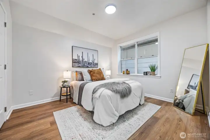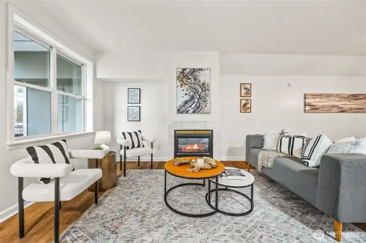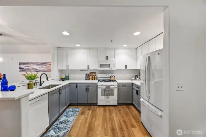 Live in the heart of the U-District at Sun Plaza—just blocks from UW. This fully remodeled 2BR/2BA condo with den is refreshed top to bottom with new flooring, paint, quartz countertops, upgraded lighting, fixtures, and stylish baths. The living area features a cozy fireplace and extends to the private patio—your retreat to enjoy coffee and the hum of the city. French doors open to a flexible den, while the kitchen shines with quartz counters, gas stove, and freshly painted cabinetry. Retreat to a primary suite with dual closets, plus a 2nd bedroom with its own walk-in closet. With secure parking, in-unit laundry, and effortless access to light rail, downtown Seattle, Trader Joe’s, restaurants, and theaters, this is city living at its best.