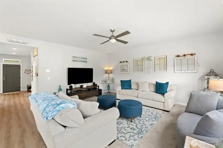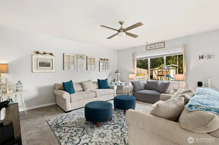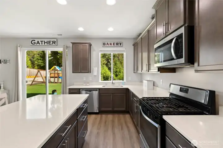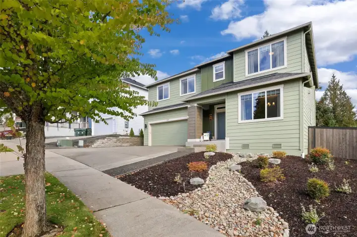 Located near Costco, Fred Meyer, the Tumwater Craft District, and the Deschutes River, this spacious 4-bedroom, 2.5-bath home offers close to 2,700 sq ft of comfortable living. The main level features a formal dining area with a convenient butler’s pantry, a chef’s kitchen with quartz counters and an oversized island, a large family room, and a powder bath. Upstairs, the primary suite boasts a 5-piece ensuite and walk-in closet, complemented by three additional bedrooms, a bonus room, laundry, and a full guest bath. The backyard is completely landscaped with a large patio, shed, fruit trees and plenty of space for gardening. A 3-car tandem garage and energy efficient heat pump with cooling complete this well-appointed home.