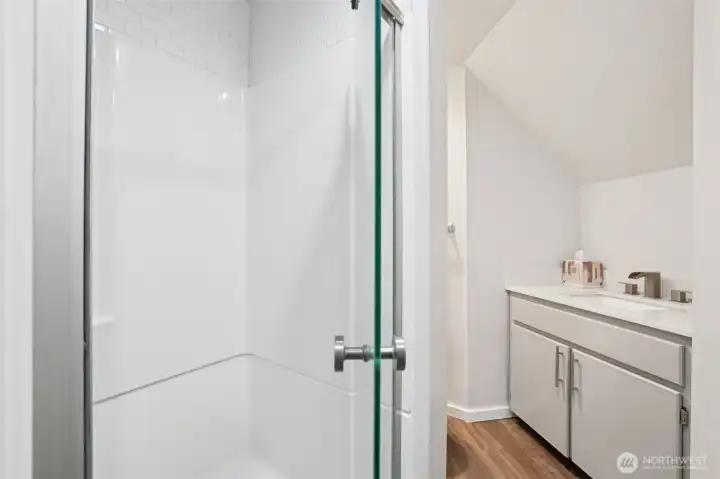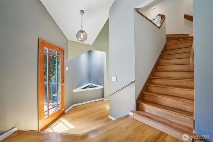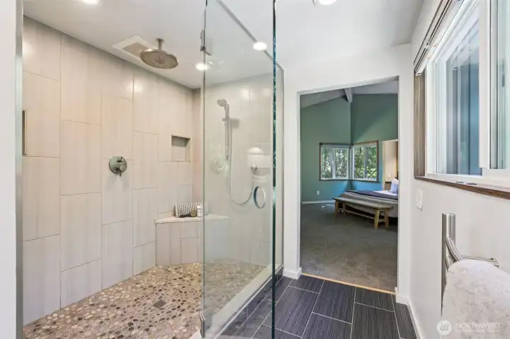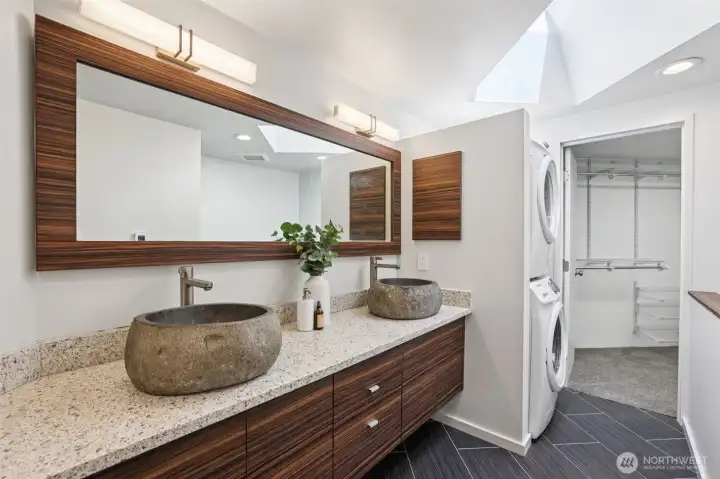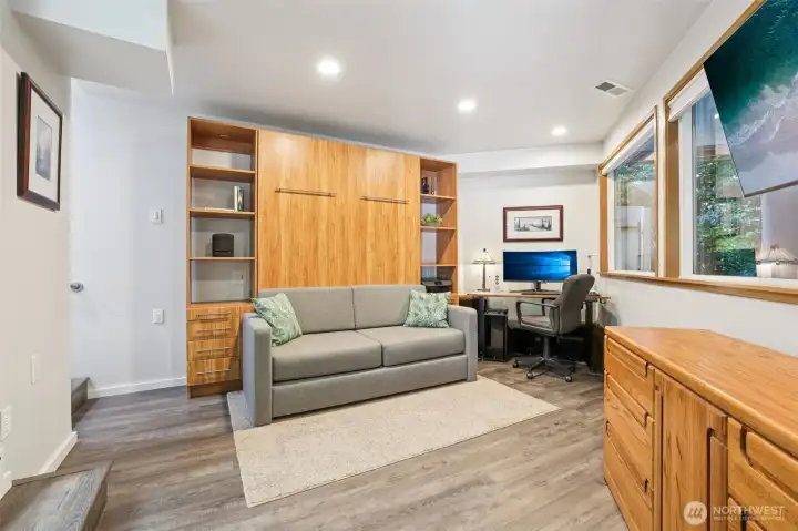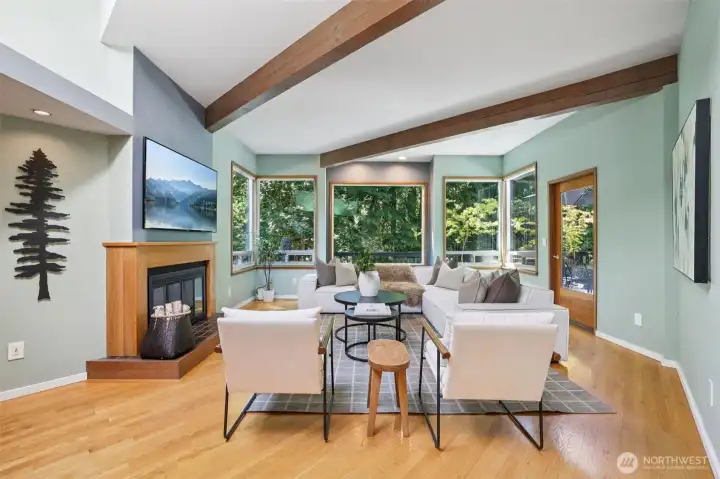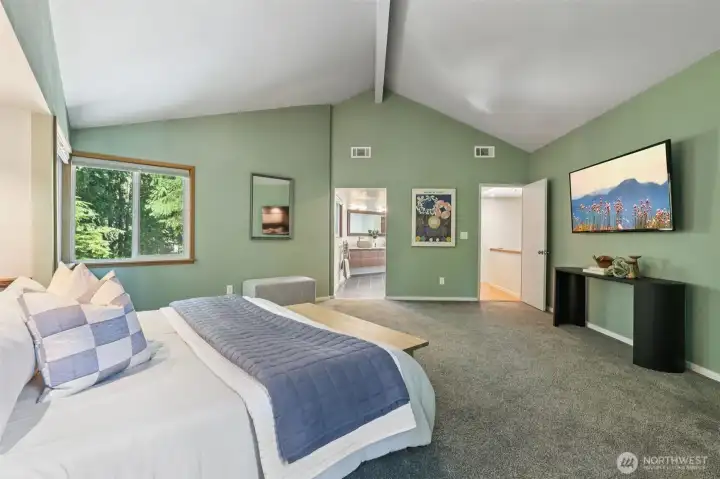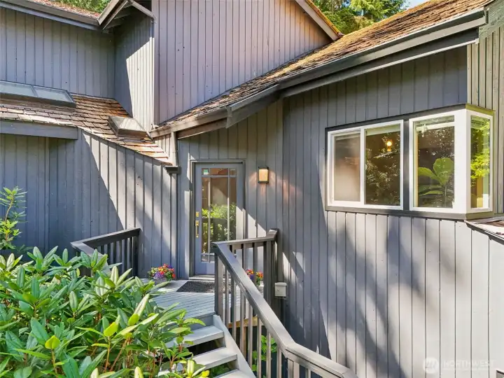 Multi-level NW contemporary with tall ceilings and walls of windows, a Large primary suite with tons of closet space, spa-like bath and ensuite laundry. Great outdoors for entertaining with wraparound deck and large patio in a private setting. Walkout basement offers a 2nd kitchen, laundry, non-conforming 4th bedroom with separate entrance and flex rooms/storage/office/gym. 2 car garage, carport and large storage shed. Upgrades include newer windows, remodeled baths, dog run, fully fenced back yard and 200 amp service. Lot A rights to The Cove with private beach, pickleball/tennis and clubhouse. Short walk to parks and shopping and easy access to light rail and 509 to downtown. Move in ready and offered at $200K below June appraisal.