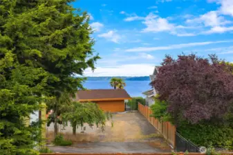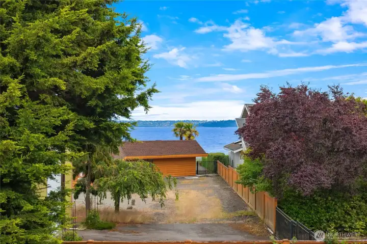 Come embrace the beach lifestyle and turn this stately and very solid house into your dream home. This home features primary living areas on the upper floor, maximizing the partial views of Puget Sound and marine traffic from the most lived in areas of the house. Spacious room sizes provide options for various lifestyles. Just through your private gate access the abundant amenities of beautiful Fay Bainbridge Park. A fully fenced backyard is perfect for gardening, lawn games, and your furry friends. Yes, this property is a bit dated but bubbling over with potential and opportunity for a fortunate buyer with vision. An oversize two car garage has deep bays, storage, and a sizable shop area. The covered RV carport has power hookup.
