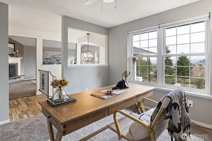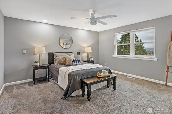 Perched atop Happy Hill, this sprawling 2,573 sq ft home sits on a .28-acre lot and backs to 300 acres of city-owned land—bringing rare privacy, nearby trails, and unforgettable east-facing views! Pride of ownership shines throughout with NEW exterior paint, fresh interior paint, newer carpet, and a BRAND NEW kitchen featuring quartz countertops. A bright, welcoming foyer opens to the living and dining spaces, flowing effortlessly into the kitchen overlooking the backyard oasis. Step outside to a massive covered deck—perfect for hosting, relaxing, and enjoying the peaceful setting—while the pool and mature landscaping create a true retreat that feels a world away. The elevated setting is part of what makes this home so special—once you’re up, it feels tucked away and private from the street below. The main level offers 3 bedrooms, including the primary suite, plus 2 updated bathrooms. Downstairs provides incredible flexibility with a 4th bedroom, HUGE bonus room, and a rec room with wet bar—ideal for movie nights, game days, or multi-gen living. Covered RV parking, and a large 2-car garage. The location, undeniably the game changer... quick freeway access, minutes to downtown Puyallup, the fairgrounds, farmer’s markets, and faint sounds of football's Friday Night Lights. Highly Sought after schools designated here, literally one of the reasons the seller chose this home 20 years ago. And yes… the neighborhood’s BEST sledding hill is right outside your door! Don't miss this!