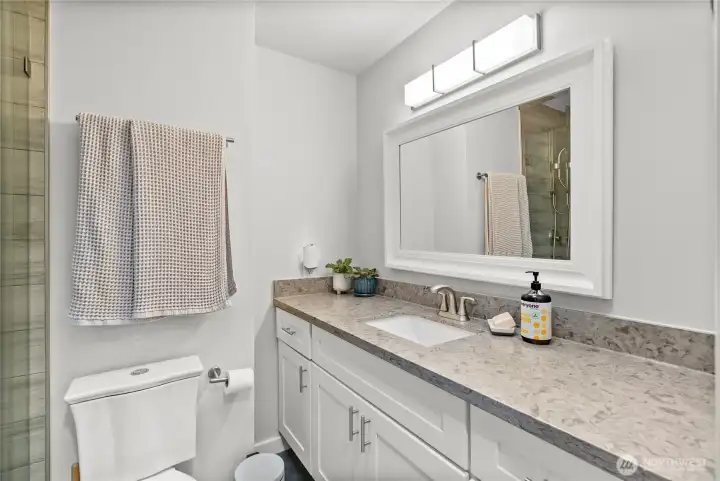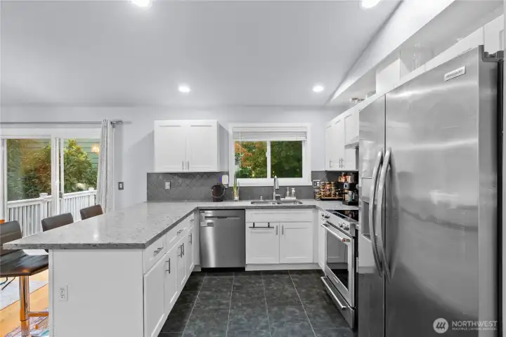 This beautifully refreshed 5bed/2.75bath has all the features you want in your new home. Including new siding & paint, tiled entry, kitchen, and baths and a stunning fireplace. Enjoy BBQ's on the deck or host backyard parties in the private back yard. Primary bedroom suite offers a modern walk in shower with glass doors. Fresh light grey paint, white wood trim, brushed nickel hardware, updated lighting add modern touches throughout. 2 car garage with EV/220 outlet. Perfectly located for easy commutes, close to Light Rail, Lake WA, schools and the airport!