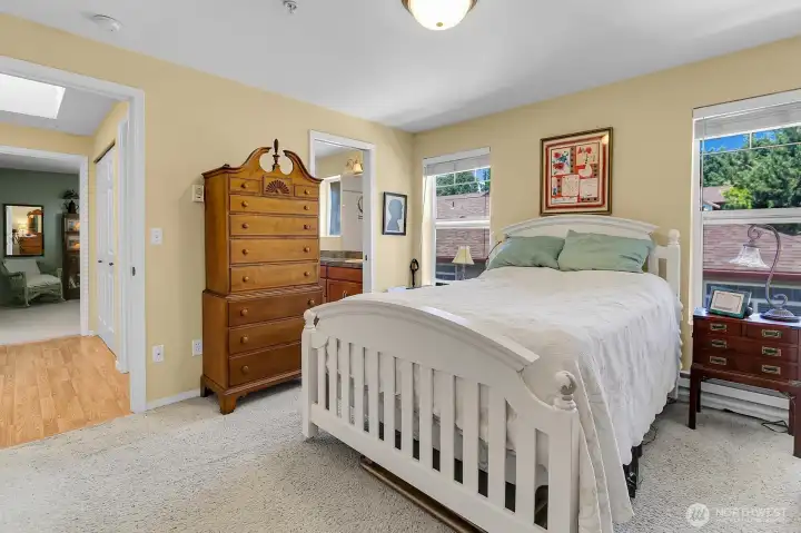 A great value in this spacious and light-filled 2 bed, 1.5 bath condo offering the comfort and privacy of townhome living with no neighbors above or below! Bright, open living and dining areas that flow seamlessly to a sunny deck, perfect for entertainment overflow. The main floor offers a tile entry, Pergo hardwood flooring, powder room, and a kitchen w/SS appliances, newer countertops, and plenty of cabinet space. Upstairs features two bedrooms, including a primary suite with a ¾ en-suite bath, tile finishes, and a walk-in shower. Includes two parking spaces. Located in the Gold Leaf community with a clubhouse, athletic court, and playground. Close to Boeing, Alderwood Mall, shopping, dining, and easy access to I-5, I-405, and Hwy 99.