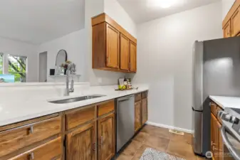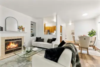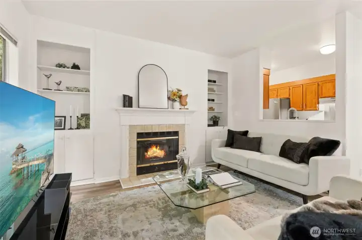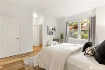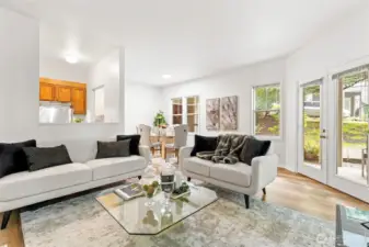 Welcome to your serene retreat for 55+ in the heart of Providence Point! This charming lower-level condo is tucked away on a quiet cul-de-sac & offers the perfect blend of comfort & convenience. Step out from your living room through elegant French doors onto a covered patio w/peaceful forest views—an ideal spot for morning coffee, gardening, or relaxing with pets. Inside, the kitchen shines w/quartz countertops, updated hardware & all brand-new SS appliances. The dining & living area is warm & inviting, featuring a cozy wood-burning fireplace for those crisp Northwest evenings. The spacious primary suite includes a walk-in closet & an updated bath w/convenient in-unit washer & dryer. Come discover the lifestyle you’ve been looking for!