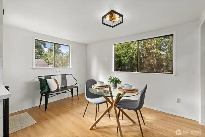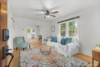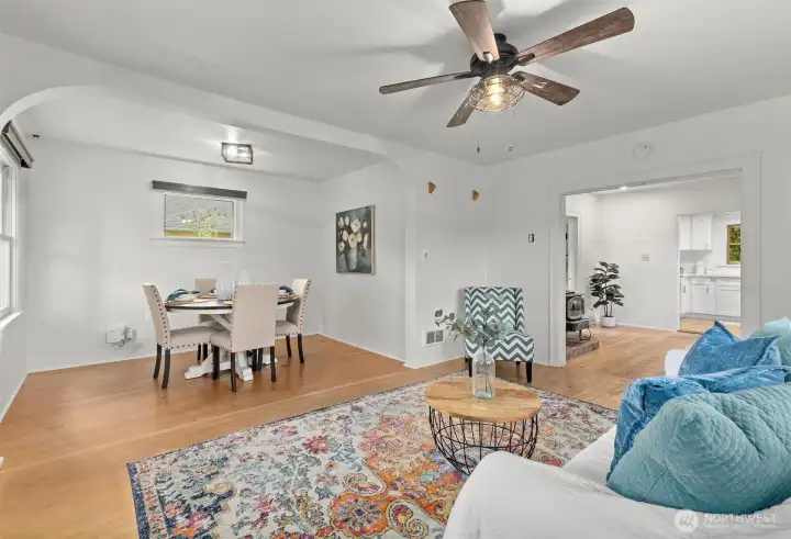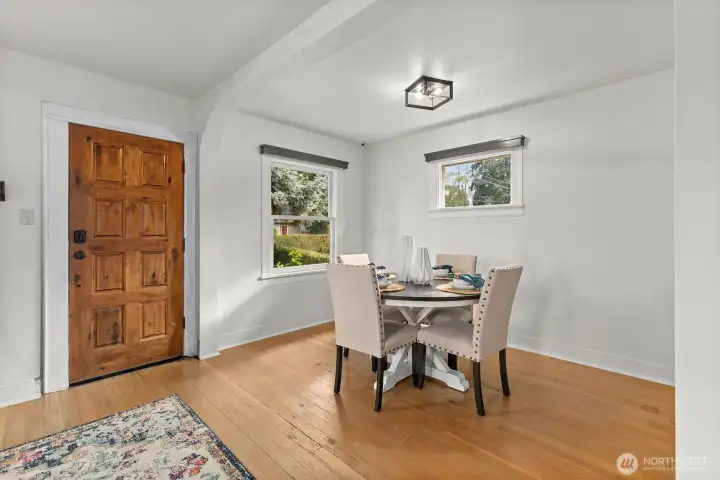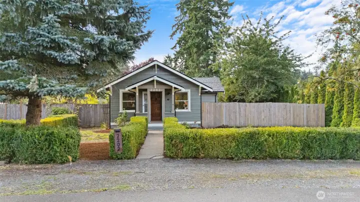 Step into Everett history with this 1922 Craftsman, once near Everett Mall and relocated to Pinehurst. Original fir floors, moldings & baseboards remain, blended with tasteful modern updates. Renovated kitchen features quartz countertops, stainless appliances & subway tile backsplash. Timeless black-and-white bathroom adds charm & character. Originally 2 bedrooms, now a spacious 1-bedroom with 2 dining areas & 2 living spaces—can convert back to two bedrooms. Fenced backyard, BIG corner lot, detached 280 ft² garage & LARGE cellar. NEW roof & gutters 2023; electrical 2024; propane & water heater 2020; kitchen + fresh paint 2025 – $70K in updates! {INVESTOR ALERT!} Live or rent the main home & build a shop or possibly two more homes in back!!