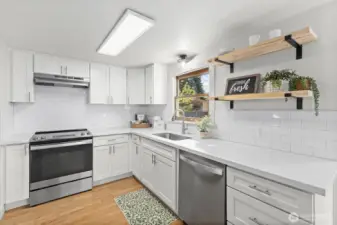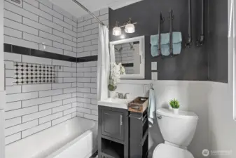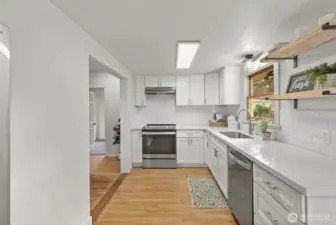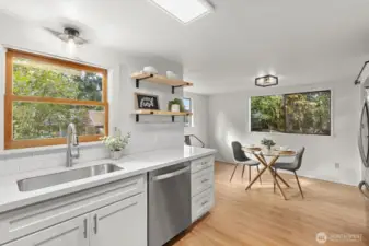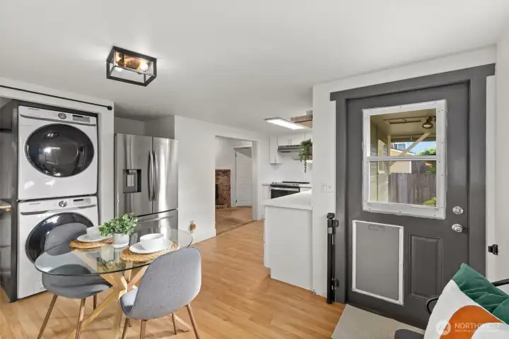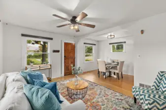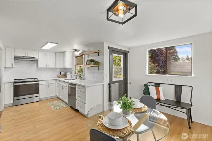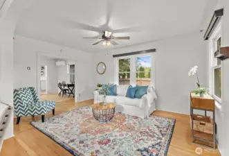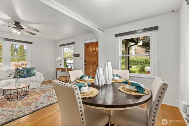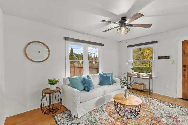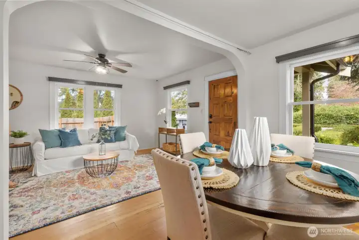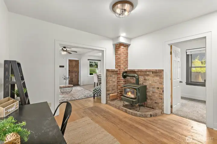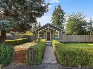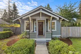 Step into Everett history with this 1922 Craftsman, once located near Everett Mall and relocated to Pinehurst. Original fir floors, moldings, and baseboards remain, blended with modern updates. The renovated kitchen features quartz countertops, stainless appliances, and subway tile backsplash. The timeless black-and-white bathroom adds charm. Originally two bedrooms, the home is now a spacious one-bedroom with two dining areas and two living spaces. A fenced backyard, corner lot, detached garage, and a cellar with side entry complete the picture. Own a home with history, character, and space for less than a condo nearby. NEW roof & gutters (2023), electrical (2024), propane & water heater (2020), fresh paint & kitchen (2025); pre-inspected.