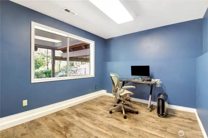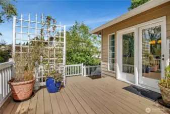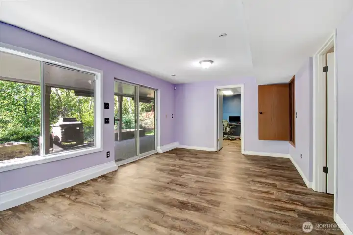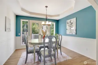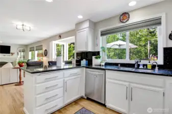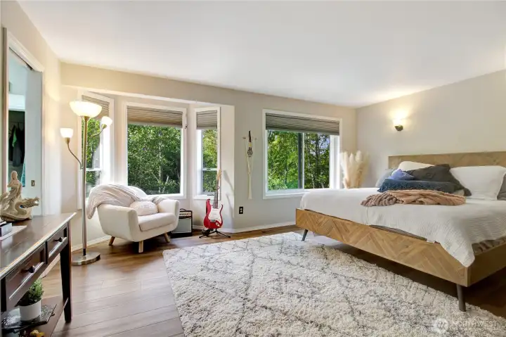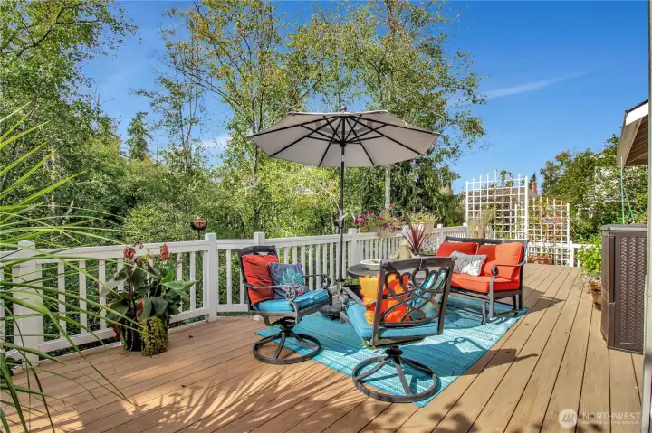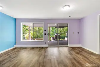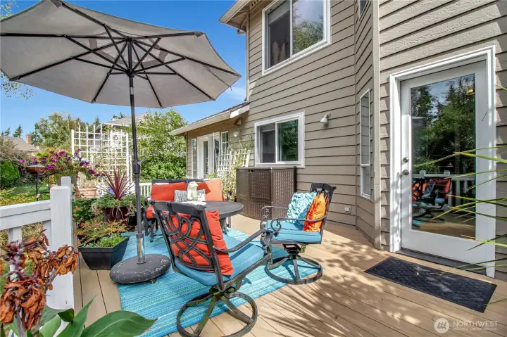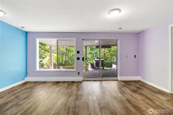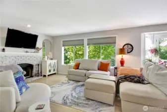 An impressive two-story entry welcomes you into the elegant living room, highlighted by a dramatic wall of windows and seamless access to the formal dining room. French doors open onto the expansive rear deck, offering a perfect setting for entertaining while overlooking a private greenbelt and sweeping territorial views.The kitchen features slab granite countertops, custom cabinetry, and a spacious layout that flows into the inviting family room with a cozy fireplace. Upstairs, you’ll find three bedrooms, including a luxurious primary suite with a spa-inspired five-piece bath. The lower level offers two additional bedrooms, a generous recreation room, and access to a private patio. Nestled at the end of a quiet cul-de-sac! Privacy!