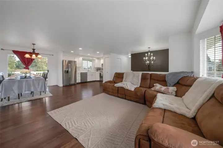 Enjoy stunning views of Mt. Rainier from this beautifully updated home, tucked away on a quiet cul-de-sac! Spacious open floor plan w/ remodeled kitchen and new appliances, this home is turn-key. Recent upgrades include Brand new water heater, furnace, heat pump-A/C for year-round comfort, plus designer laminate flooring on both levels. Newer Hardie Plank siding and roof. Deck is ideal for BBQs and outdoor dining. Backing to a large open field and fully fenced yard. 4 bedrooms there’s plenty of space for everyone. Bathrooms have been tastefully updated. Downstairs, you'll find a spacious family room, full BA/Laundry rm, Large BR and 2 Car Grg. This home offers a peaceful, country feel while still minutes from town. Don't Miss it!