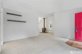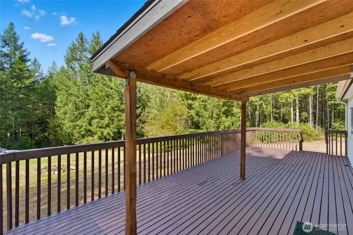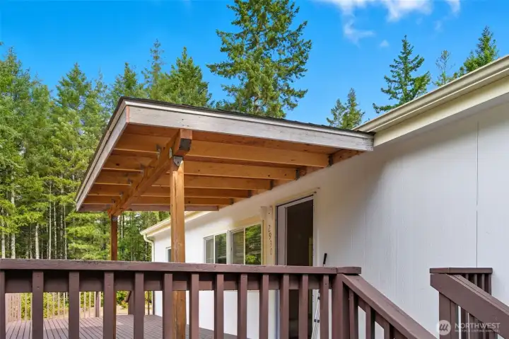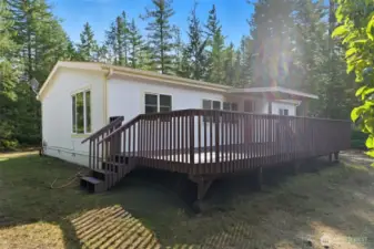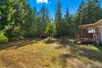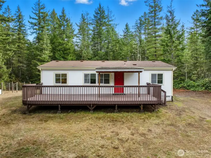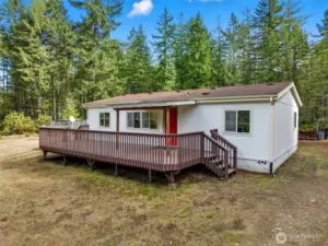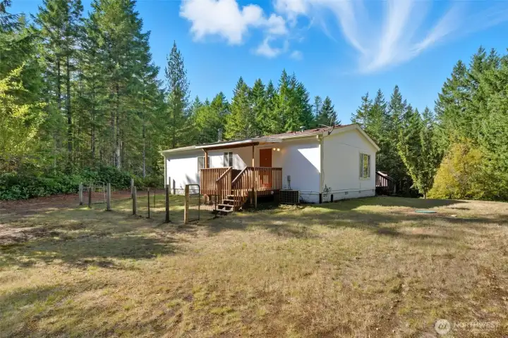 Escape the ordinary! Tucked away on 5.43 private acres, this 3BD/2BA - 1,000 sq. ft. home is enclosed with tall trees, deer at dawn, and eagles overhead. Inside: new LVP & carpet, some new contemporary light fixtures. Heat pump and a free-standing wood stove for cozy nights. Outside: fruit trees, firepit for evening gatherings, fenced dog run, sunny front deck, and covered back deck. Spacious detached 2-car garage with shop plus portable carport provide ample parking, not to mention the endless driveway parking at entry. Stacked wood storage in backyard is all yours! Tie-downs, and title elimination make financing simple. Clean and fresh, ready for some new life! Peaceful, secluded, and move-in ready—your perfect PNW retreat!