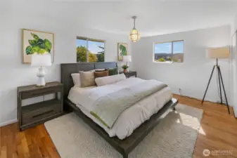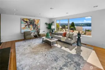 3440 sq ft, mid-century modern, 5+ brdm/2.5 bath home on 11,800 sq ft, nearly-level, fenced lot perched on a quiet street w/ breathtaking 180 degree views of Lake Washington. Freshly painted inside & out, new carpeting downstairs, main floor original hardwoods just refinished, and a beautifully refurbished 360 sq ft, water view deck. Lower level offers a separate den/library area, a kitchenette with pass-through for snacks and bonus/flex room for potential non-conforming 6th bedroom. Desirable Northshore School District. A very rare combination of an incredible location on a lovely, peaceful street, a nice, large home with amazing personal and shared spaces, a huge, fenced yard, and sweeping lake and teritorial views. Truly one-of-a-kind.