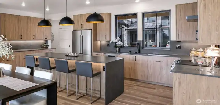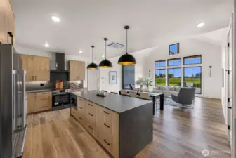 This exceptional rambler blends sophisticated design w/ practical features offering ultimate one-level living. Featuring vaulted ceilings that amplify the sense of space & light throughout & a gourmet kitchen w/ high-end appliances & quartz countertops. The open concept design flows effortlessly into spacious living & dining areas, ideal for everyday living & entertaining. Beautifully appointed bathrooms showcase exquisite quartz showers for a spa-like experience at home. Enjoy the expansive covered patio, perfect for relaxing or entertaining, while taking in stunning territorial views. Additional highlights include a drive-through garage & close proximity to downtown Lynden & the Canadian border.