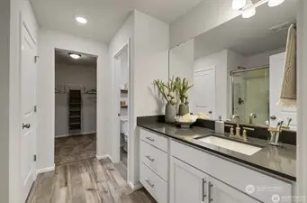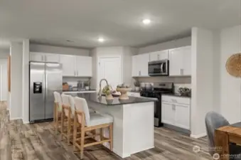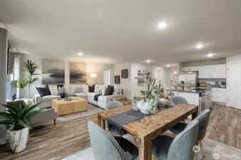New Evergreen Grove Community! The Sutherland floor plan on Lot 58, offers stylish design and modern features. An open concept living space with dining space off kitchen has access to enclosed covered patio. The primary suite off living room showcases a walk-in closet, a linen closet, and private bath with dual vanities and a walk-in tile shower. Quartz countertops throughout the home, deep stainless steel sink, large tile backsplash in the kitchen, white Maple Shaker style cabinets with hardware and soft close hinges. LVP throughout the home including utility room, and carpet in bedrooms. Homes come with front yard landscaping, and Buyers have some Upgrades to choose from. BUYERS BRING BROKERS for first visit to register to receive Comm.