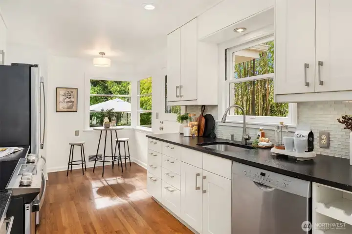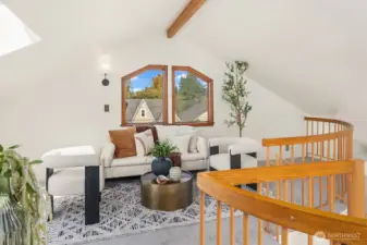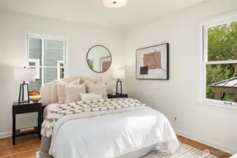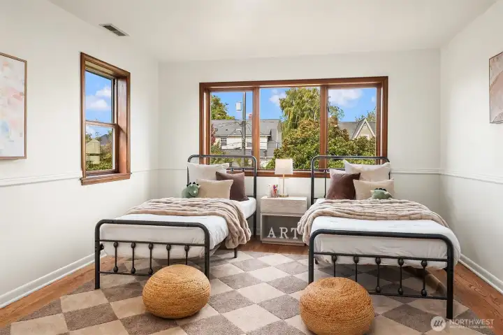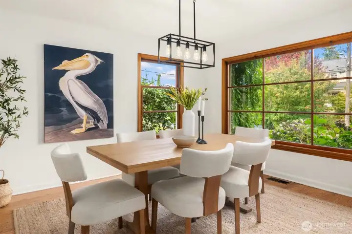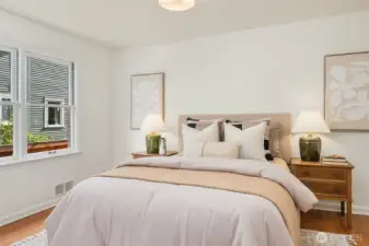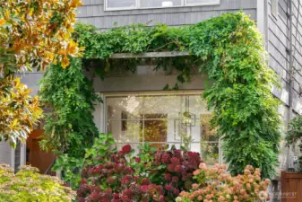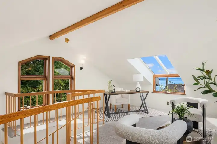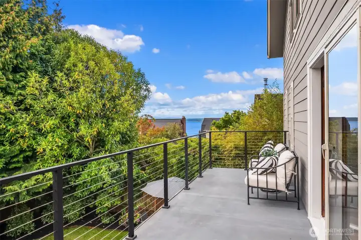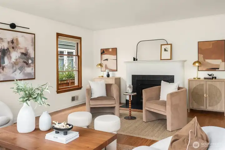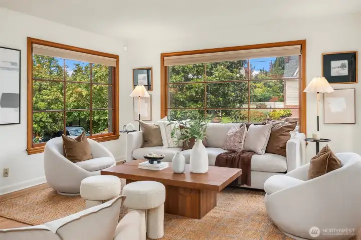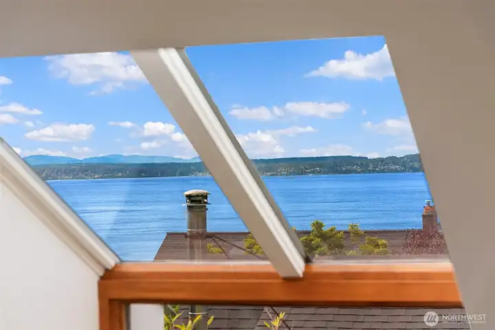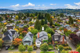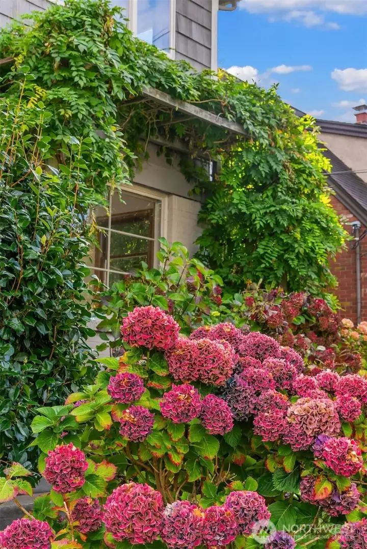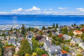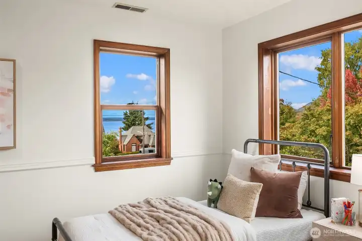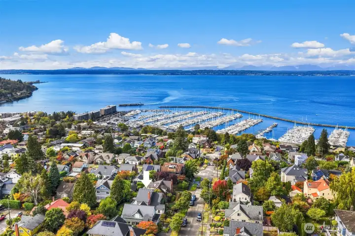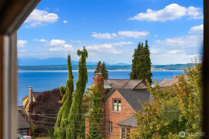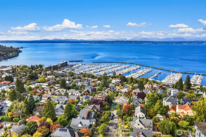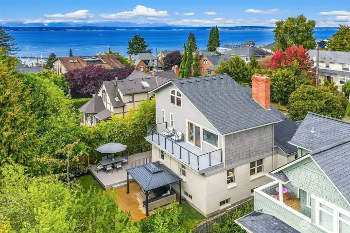 Storybook Sunset Hill 5BR/2BA coastal-style home w/ water views from both levels, and a top floor primary suite with water view office & private deck! Nestled on a fenced lot framed by hydrangeas & wisteria, this home blends timeless charm w/ modern livability. Light-filled rooms capture sparkling vistas, while the deck, gazebo & lush garden create an entertainer’s paradise in the level backyard. Enjoy morning coffee overlooking the water, garden parties under twinkling lights, or quiet evenings surrounded by beauty. Classic design, private outdoor oasis & a coveted location—this home is a rare chance to live the coastal PNW lifestyle minutes from Ballard shops, cafes, marina & highly rated schools.