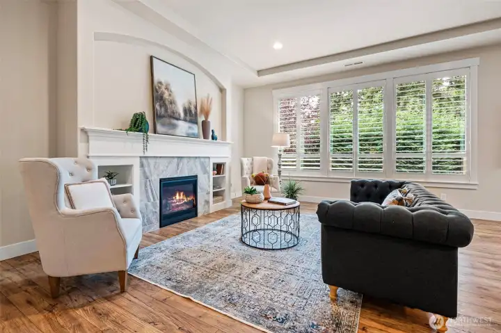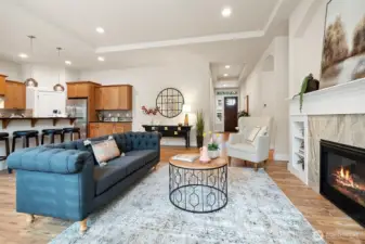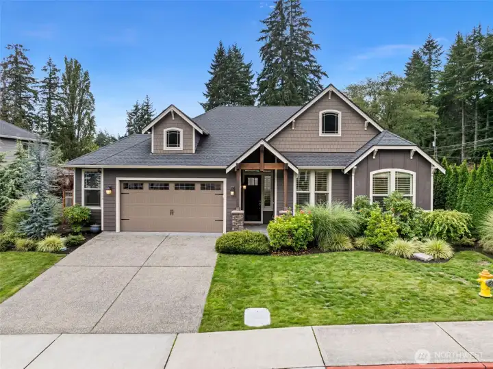Come home to this sophisticated single-level beauty! Set in the newer Fox Run neighborhood, you are within minutes of downtown Gig Harbor and Uptown shopping/dining. This home features a layout that is spacious in all the right places. From the inviting living/dining room with eye-catching fireplace, to the gourmet kitchen with double oven and island perfect for entertaining, from the airy primary suite with gracious walk-in closet and luxurious soaking tub, to the fully-fenced yard with patio, it's creature comforts galore. Two guest bedrooms, guest bath, and den off entry ensure plenty of space! Garage is equipped with electric car charger. This house comes with a complimentary one-year home warranty. See yourself here!
