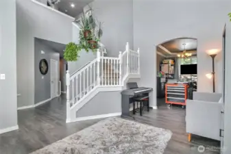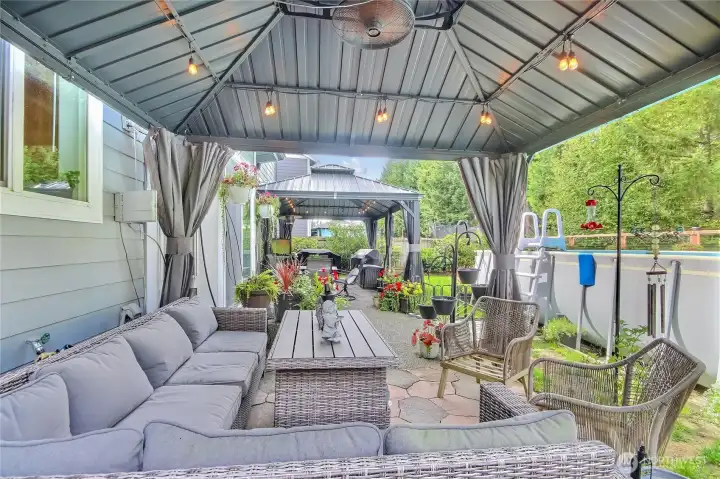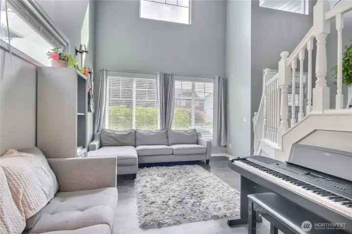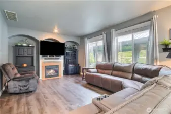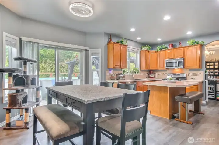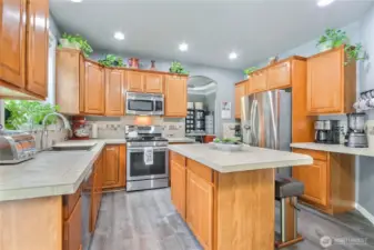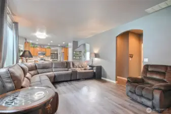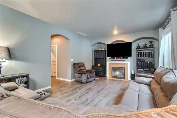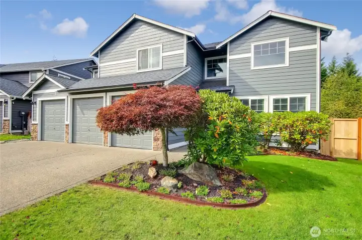 Situated on a Quiet Greenbelt, You Will Find This Great 4 Bed, 2.5 Bath Home in the Gated Community of The Buttes in Orting. Features include a 2-story entry, 9' ceilings, hardwood floors, a tray ceiling in the formal dining room & a fireplace in the family room. You'll love the open kitchen with tile backsplash, island with breakfast bar, SS appliances and pantry, the formal and informal living & dining areas. Upstairs through the French doors, you will find the huge primary suite with vaulted ceilings, an ensuite bath with jetted tub & walk-in closet; plus a large bonus room, 3 additional beds & a bath. Outside, you will find a 3-car garage, large fenced backyard with an extra-large patio with a built-in firepit for entertaining & shed.
