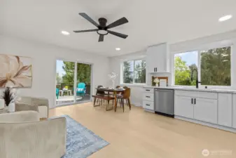 INCREDIBLE RENOVATION**FANTASTIC LOCATION**ADU/MIL/DUPLEX OPTION**Stunning 3bd 2.5 bath home near Matthews Beach is a MUST SEE/DON’T MISS opportunity for all buyers & investors! Imagine an owner-occupied investment option, a legal duplex w/the comfort of home & MIL bonus, or rent 2 units. Over $300k upgrades include new kitchens w/quartz counters, undermount sinks, shaker cabinets, subway tile +new SS appl. Both levels feature new engineered hdwds, windows+lighting & 1-panel doors. Bathrooms offer quartz counters, exquisite ceramic tile flooring, vanities, new tub up. New trim, lighting, paint in and out, gutters & insulation & water main. 1-car garage+shop w/alley access+2-car carport+ X-tra parking, fully fenced XL corner lot, lake views!
