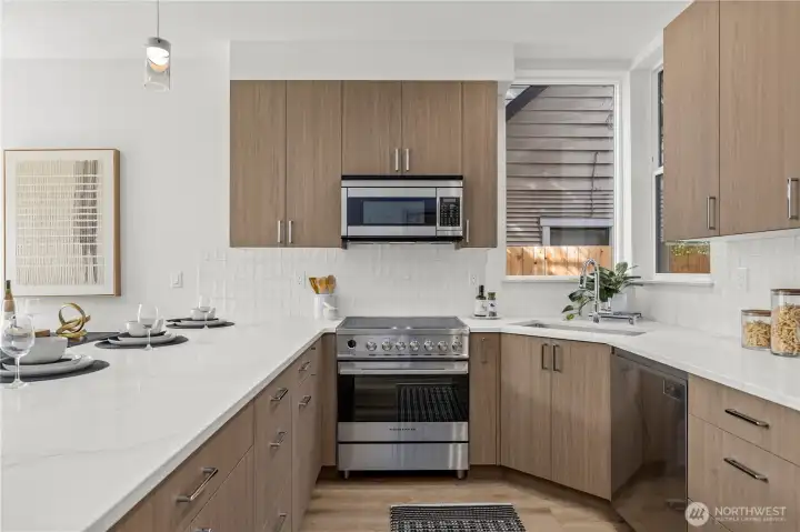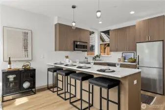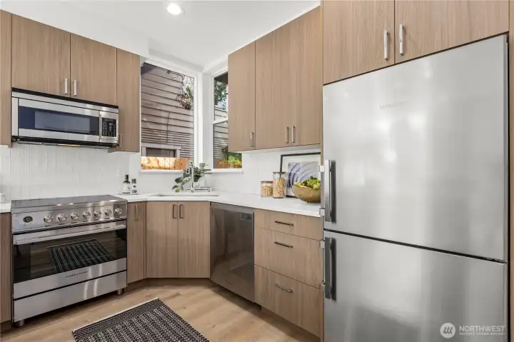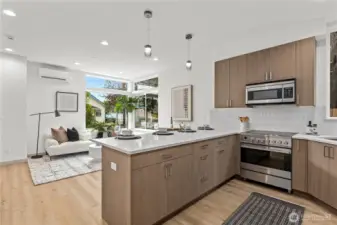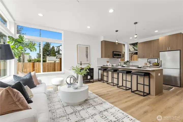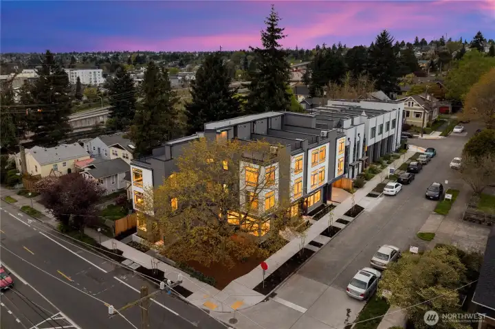 3.25% RATE W/PREFERRED LENDER (qual. apply) & EV-READY PARKING INCLUDED! Modern and charming new construction home places you at the center of it all. Just 5 blocks to Green Lake, enjoy the Lake, boutique shops, cozy cafés & dining —while being less than 2 blocks to Roosevelt Light Rail &near vibrant Roosevelt corridor. Designed to live like a single-family home, enjoy a show-stopping chef’s kitchen w/premium SS appliances &enormous island that anchors the sun-filled open layout, flowing seamlessly into a bright living room w/designer finishes &direct access to courtyard. Upstairs, discover 3 generous bedrooms, including a luxe primary suite. Expansive rooftop deck w/panoramic views of Seattle’s skyline, treetop & Green Lake neighborhood!