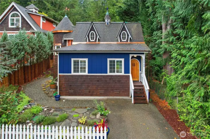 Just blocks from the community beach, this custom 2-bedroom, 2-bath Indianola home offers charm and quality in a serene setting. The main floor features a bedroom, and full bath, living area with open kitchen/dining area, slider out to the deck and fenced back yard. Head upstairs to the primary suite with ensuite. Custom finishes throughout highlight the craftsmanship. Large storage shed outside, for gardening, extra space, or storage. Enjoy tennis courts right across the street and the peaceful community vibe, just blocks away from the Indianola pier, community beach, & general store, and all just 10 minutes from the Kingston Ferry and Seattle Fast Ferry. Mortgage savings may be available for buyers of this listing.