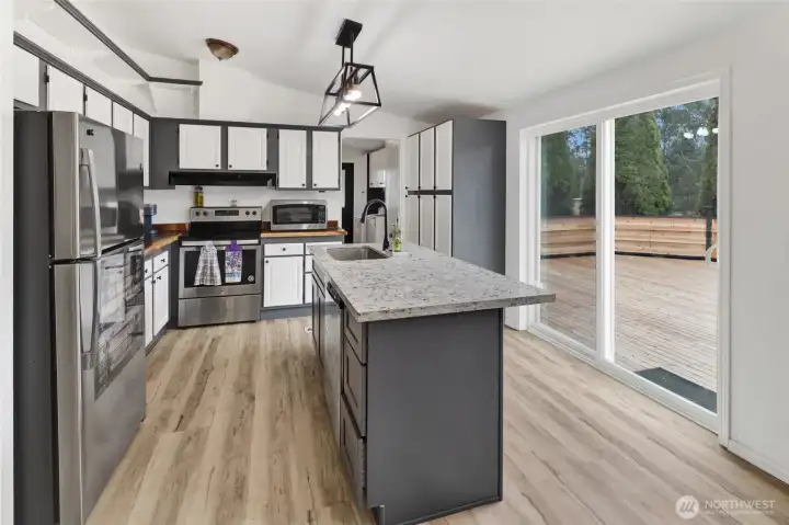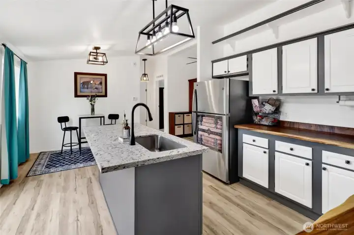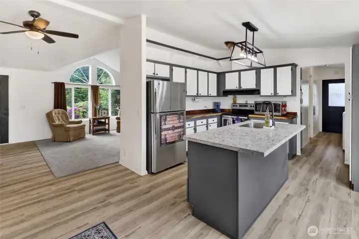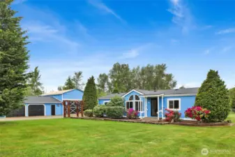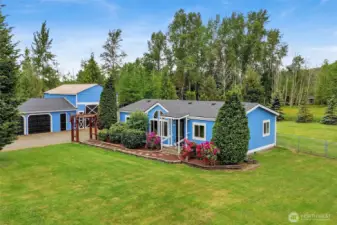 This mini farm offers a blend of country living and modern comforts A full remodeled 3 bedroom 2 bath home on 4.8 acre is ideal for hobby farmers or anyone seeking a peaceful lifestyle. Highlights include: new roof, windows, flooring, plumbing and lighting. The kitchen stands out with wood raw edge counters, island seating, and new appliances. Relax in the beautifully updated bathrooms. Farm outbuildings currently support livestock, poultry, and feed storage. Extra sturdy pasture fencing provides added ease of maintenance. 2 car garage with flex room sits along side a one bay shop ready for all your projects.