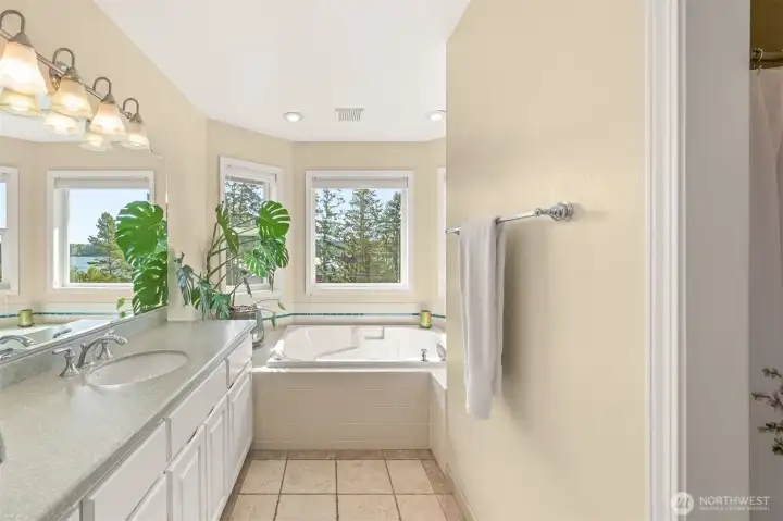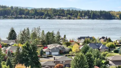Craftsman home in sought after Silver beach neighborhood of Eagleridge. Views of Lake Whatcom from almost every room. This home sits on a flat lot shy of 1/2 an acre w/ 3 car garage & ample parking. Home features 2 generously sized living rooms, formal dining & open kitchen with granite counters, SS appliances & direct access to a large deck- an entertainers dream. Fully fenced backyard includes a number of fruit trees & beautiful stone patio. Upstairs includes primary w/private ensuite, 2 additional beds & oversized bonus room w/vaulted ceilings & wet bar. Recent upgrades include new flooring throughout, brand new remodeled bath w/tiled walk in shower, new hot water tank, furnace & more. 50 year presidential roof. Steps from Lake Whatcom.