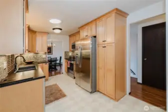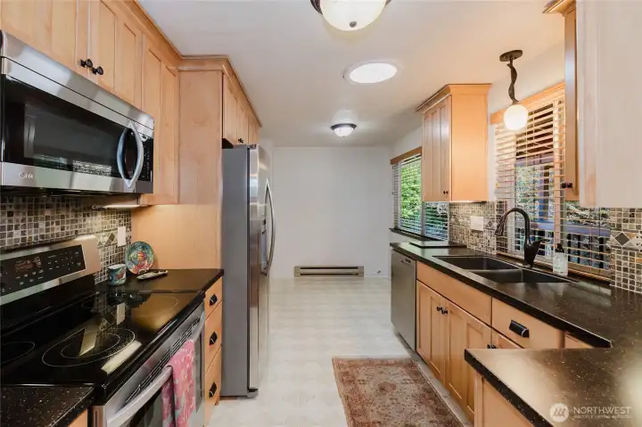 Discover this spacious, one-owner home featuring 4 bedrooms & 2.5 baths, situated in the CK School District. With 1,972 sq ft of living space, this home includes a recently renovated upscale kitchen & a 3/4 primary bath. The lower level offers a large walk-in shower. Enjoy cozy evenings by the wood-burning fireplace in the living room or relax in the family room with its pellet stove. The large, fenced backyard is adorned with lovely gardens, including a sizable shed, & features a covered deck. Conveniently located just 15 minutes from Bremerton & Silverdale, this home is nestled on a quiet cul-de-sac & offers ample parking, including space for a boat & RV. It's ideal for commuting to Seattle & local Naval bases & is close to all amenities.