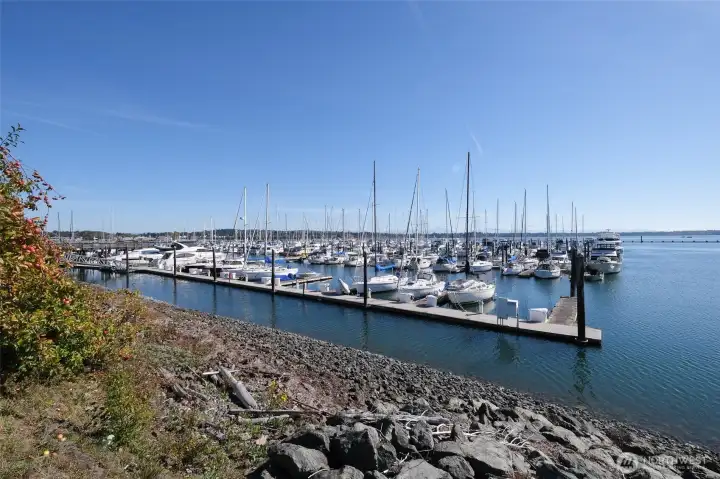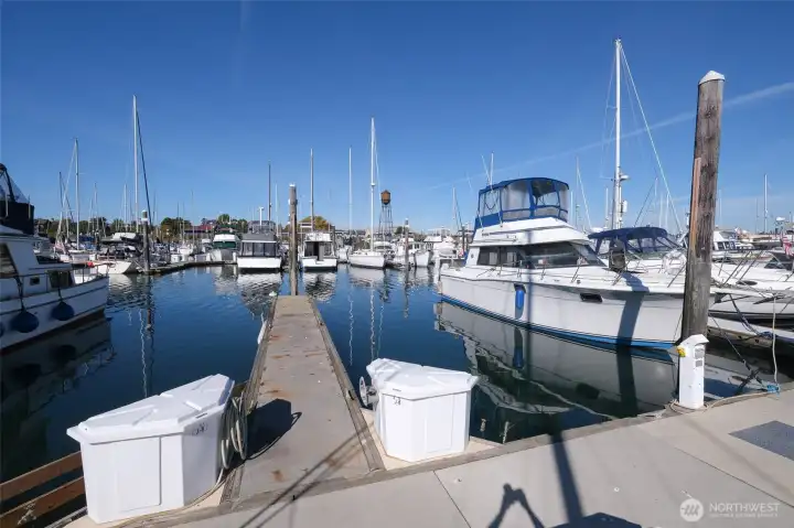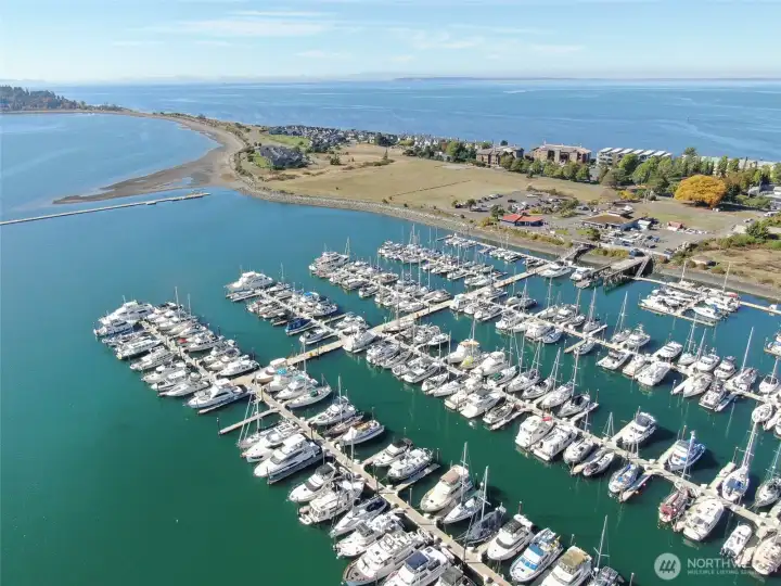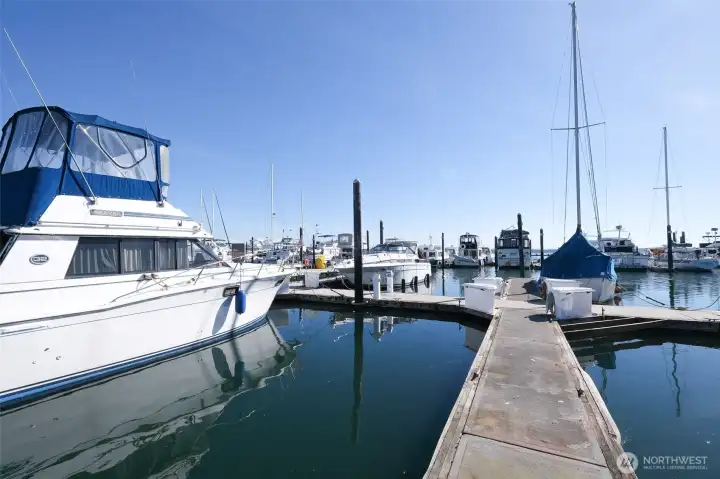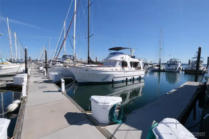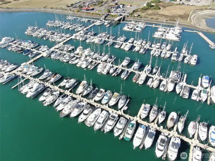 36’ Boat Slip with a 2' overhang allowance and 12’9” Beam at Semiahmoo Marina. Situated for favorable wind exposure, this slip offers an optimal moorage position. Modern, well-maintained marina featuring secure gate access, laundry & shower facilities, portable & stationary pump-out, full-service fuel dock, free disposal of discarded oil/fuel/batteries, 30-amp power (limited 50-amp available), chandlery, patio area for social events, dinghy storage, and access to walking & biking trails. Marina has Cafe & General Store; Slip owners eligible for a 10% discount on most store/café items.