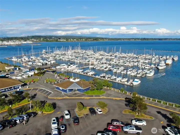 36’ Boat Slip with 12’9” Beam at Semiahmoo Marina. Situated for favorable wind exposure, this slip offers an optimal moorage position. Modern, well-maintained marina featuring secure gate access, laundry & shower facilities, portable & stationary pump-out, full-service fuel dock, free disposal of discarded oil/fuel/batteries, 30-amp power (limited 50-amp available), chandlery, patio area for social events, dinghy storage, and access to walking & biking trails. Marina has Cafe & General Store; Slip owners eligible for a 10% discount on most store/café items.