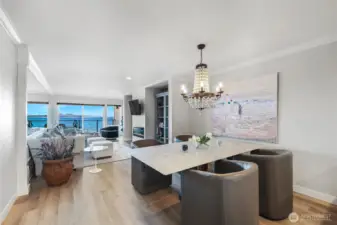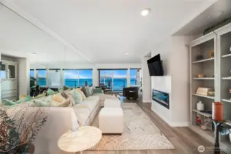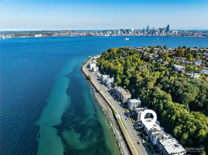 Sweeping wireless view of Puget Sound and Olympic Mtns at the quiet end of beautiful Alki Beach. Watch whales, boats and winter storms, enjoy sunny days and beautiful sunsets on the covered deck, walk for miles, bike or kayak along the shore. Alki is a close knit community you will love to call home! Bayshore Condominium is a building with 25 units and has had recent building improvements: Roof replaced in 2020 decks and walkways resurfaced in 2023 (no pending special assessments) and #304 has had nearly $60K of recent upgrades. This elegant home is ADA accommodating with wide halls and doorways, low threshhold shower and maneuvering space in primary bath, laundry off hall and roomy kitchen. Gated garage and secure lobby entrance.