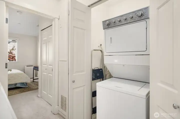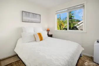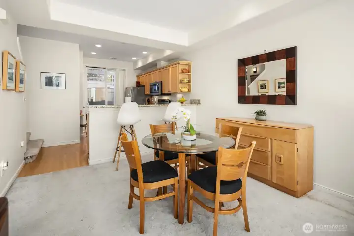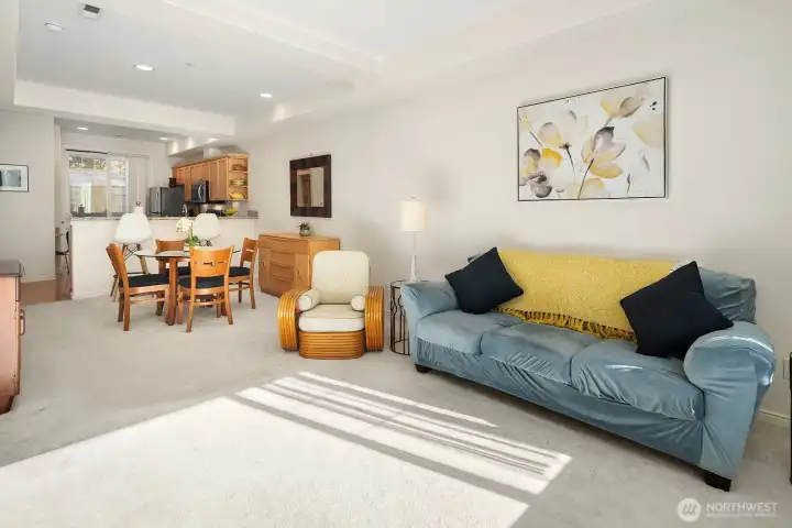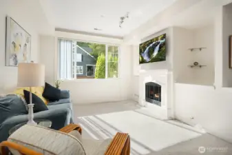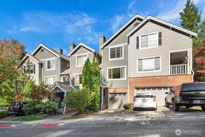 Sophisticated Skye Landing residence in coveted Klahanie; this beautifully designed 2-bedroom, 2.25-bath townhome showcases soaring vaulted ceilings, a cozy gas fireplace, an open-concept kitchen with granite counters, and a serene, private patio perfect for a quiet morning coffee. The top floor features an expansive primary suite with a spa-like double-vanity bathroom and a second bedroom or office space with en-suite bathroom. A laundry closet is located on the landing between the bedrooms. Enjoy the convenience of an attached two-car tandem garage and abundant storage, all nestled in a tranquil community setting just moments from Klahanie’s lush parks, scenic trails, resort-style pools, and top-rated Issaquah schools.