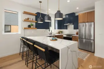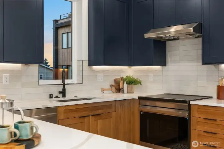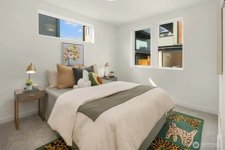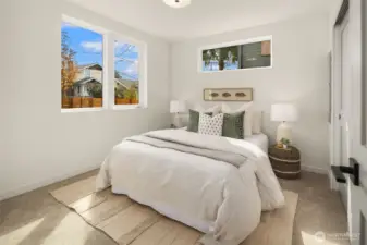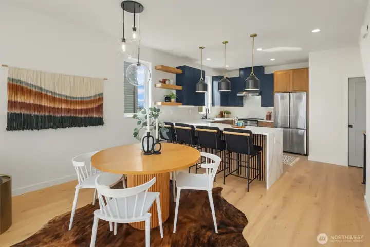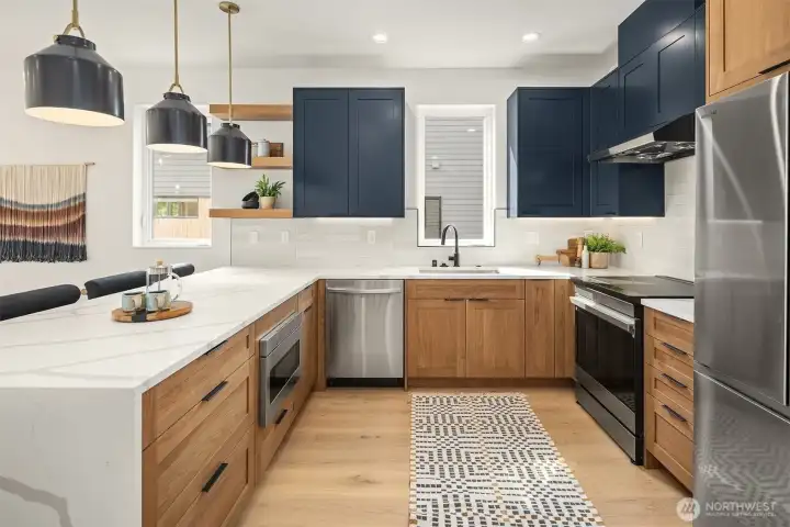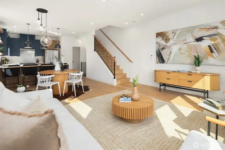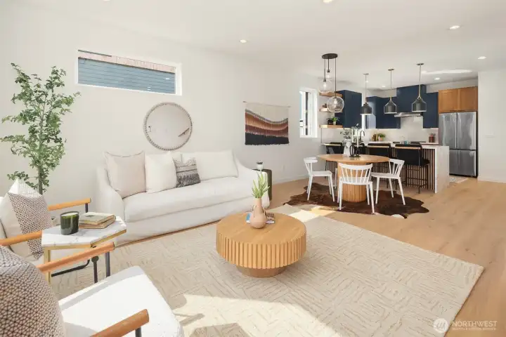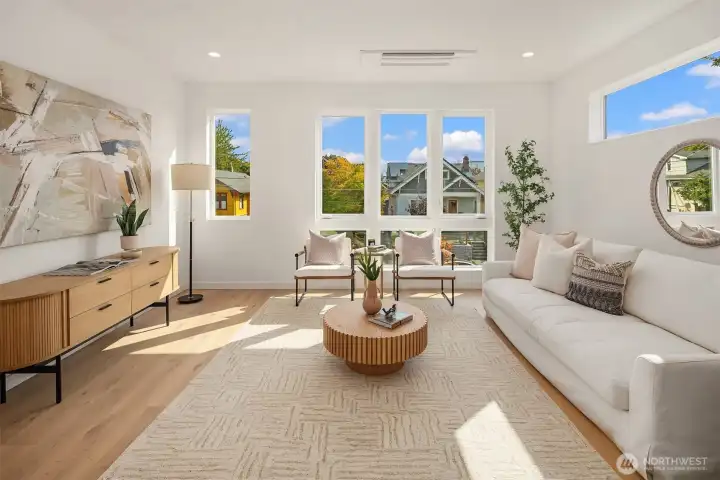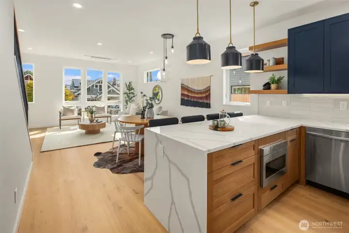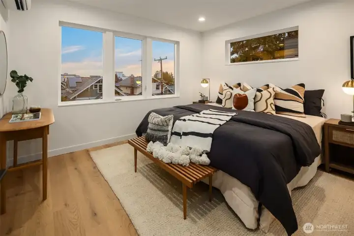Last home available! Modern design, thoughtful details, and a coveted Wallingford address—this new construction by Ecoworks Homes showcases quality on every level. A bright, open layout with floor-to-ceiling windows and warm contemporary finishes creates an inviting atmosphere. Chef’s kitchen appointed w/ stainless appliances, custom cabinetry, and a peninsula island ideal for entertaining. Entry level offers two spacious bedrooms and a full bath, perfect for guests or a home office. Upstairs, a luxurious primary suite w/ spa-inspired bath and a generous laundry room. A rooftop deck with mountain and city views! Fenced yard with patio + designated EV parking space. All just a short walk to Gas Works Park, restaurants, and local favorites!
