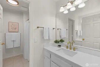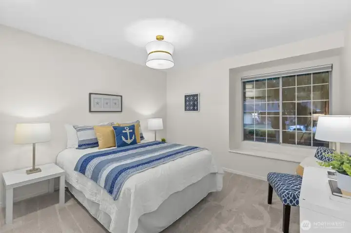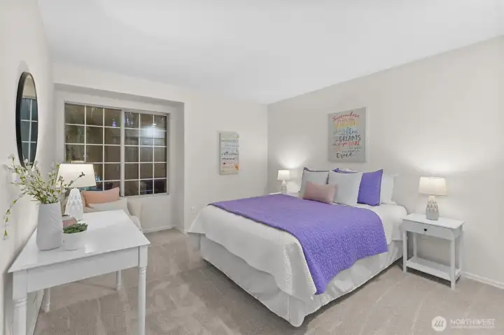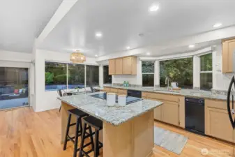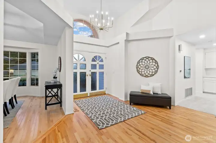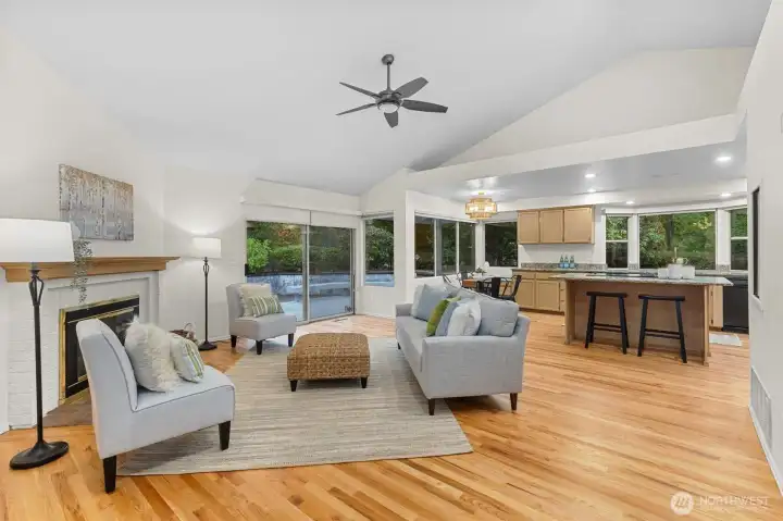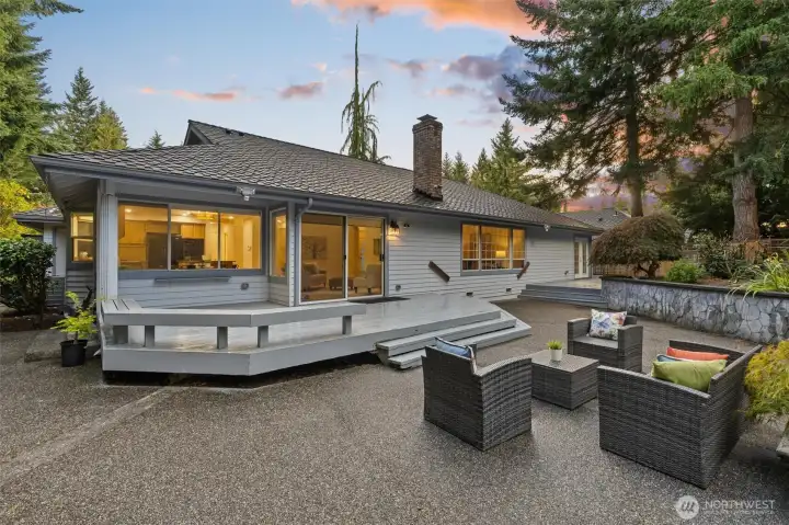 Move-in ready, stylishly updated rambler in the desirable Douglas Fir neighborhood! Recent updates include a new deck, refinished hardwoods, new carpet, updated hardware, lighting & plumbing fixtures & 1 year old furnace, A/C & water heater. Fantastic floor plan with only 1 step to the front door boasts living & dining rooms, family room with cozy gas fireplace, kitchen with pantry, island & breakfast nook, and primary suite with deck access, vaulted ceilings, walk-in closet & 5-piece bath. Beautiful backyard is ¾ fenced with permit obtained for fencing along Trillium. Ideally located near Mill Creek Town Center, schools, golf & tennis clubs, aquatic center, Arena Sports, scenic nature trails, parks, SWIFT Transit Line, Park & Ride & more.