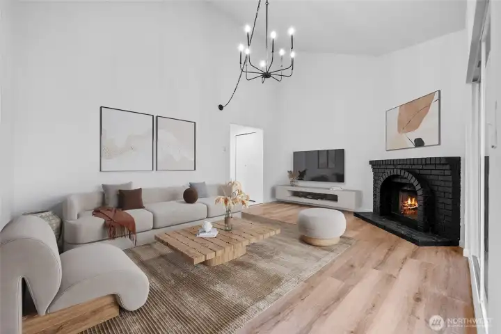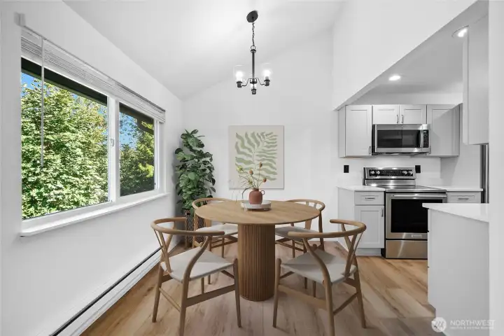 Prime location! Tucked away in the desirable Cedarwood Condominium community, this two bedroom home offers both comfort and convenience just minutes from Totem Lake’s shopping, dining, and commuter access. Recent updates include fresh interior paint, stylish new flooring, and vaulted ceilings that create an airy, open feel. The layout features a welcoming living room with a charming arched fireplace and a dining space just off the galley kitchen. Step outside to a covered patio perfect for year-round use. Extensive exterior improvements—new siding, windows, and roof in 2021—ensure lasting value. Pre-inspected and with no rental cap, this property is ideal for both investors and homeowners alike.