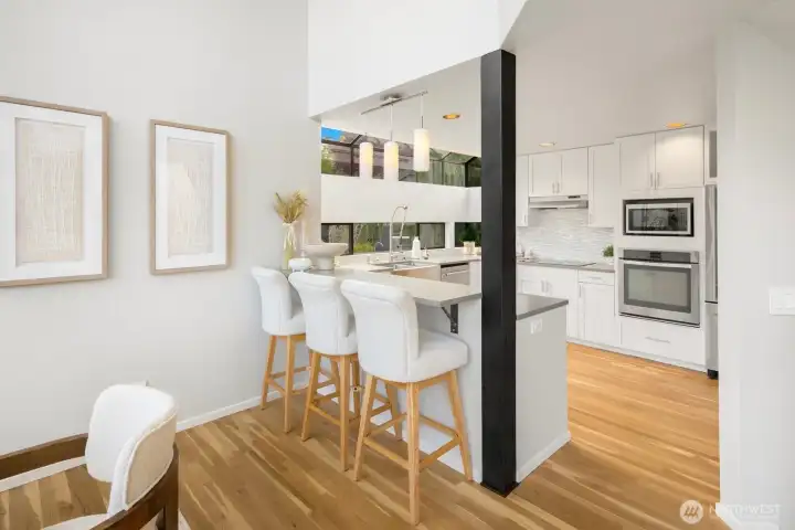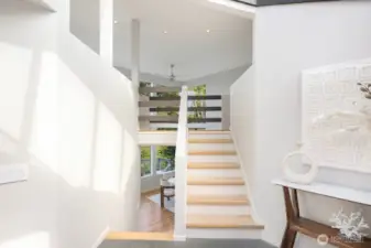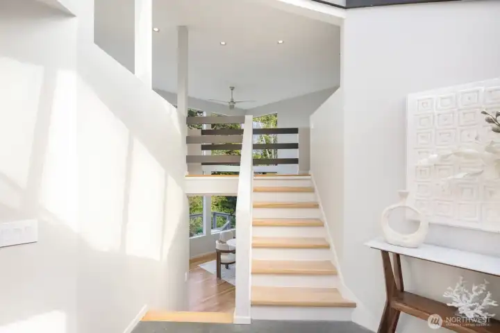 This stunning Modern North Beach home offers breathtaking Puget Sound views and an ideal blend of style and function. With 3 spacious bedrooms and 2.5 baths, this contemporary residence features bright, open rooms and an atrium-style kitchen ceiling that fills the space with natural light. Recently repainted and outfitted with new flooring, it boasts an architecturally designed fireplace as a striking focal point. The home includes a 2-car garage and private workspaces perfect for productivity. Multiple decks on different levels offer serene spaces for relaxing while enjoying panoramic views of the Sound. A perfect blend of modern design and PNW living!