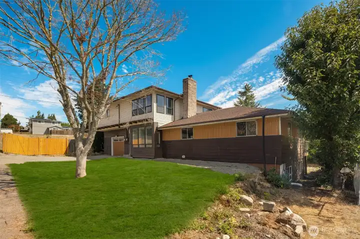 Opportunity Knocks! A true diamond in the rough in a fantastic location! This legal duplex offers incredible potential and may even be converted into a triplex for added income and value (buyer to verify). The main home features 4 bedrooms, 2 baths, vaulted ceilings, hardwood floors, 2 fireplaces, a galley kitchen, and a spacious lower-level rec room with additional rooms ready to finish. A 1-car garage, shop area, and massive 4-car carport with double RV parking are a huge plus. Need a place to live while you remodel? The bonus 2-bedroom apartment, built in 1990, provides stunning Sound and Mt. Rainier views—making the project more manageable. With multi-level decks to enjoy those views and endless possibilities for customization.