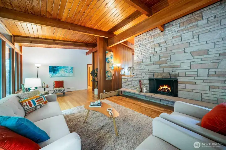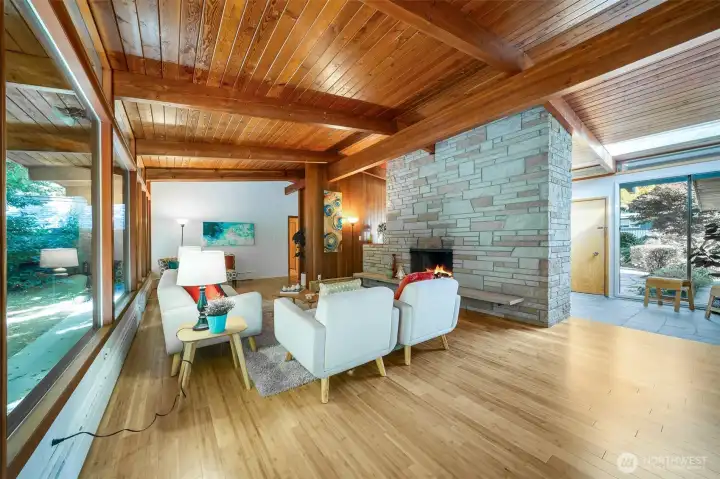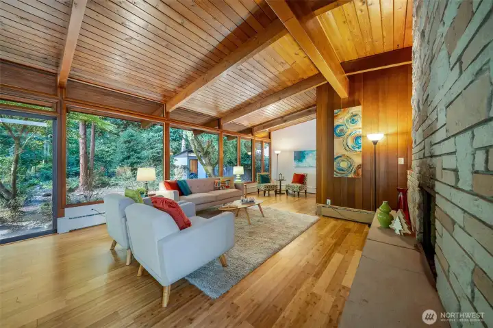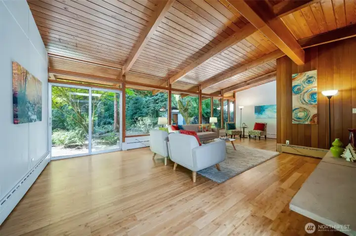 Welcome home to a striking Mid-Century Modern home that perfectly captures the essence of Northwest design, open spaces, and a seamless backyard connection to Watershed Park. Inside, you’ll find rich bamboo floors, clean architectural lines, and expansive windows. The open concept living area flows to the outdoor spaces, creating a perfect environment for entertaining or quiet reflection. Tasteful updates complement the home’s original charm, offering modern comfort with timeless appeal. Experience the artistry of mid-century design located near Olympia High School, close to downtown, shopping, restaurants, I5 and entertainment.